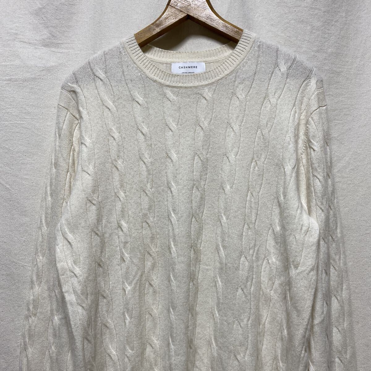 比較的薄手のカシミア100%のケーブル編みニットは、適度な肉感でインナー使いもしやすいです