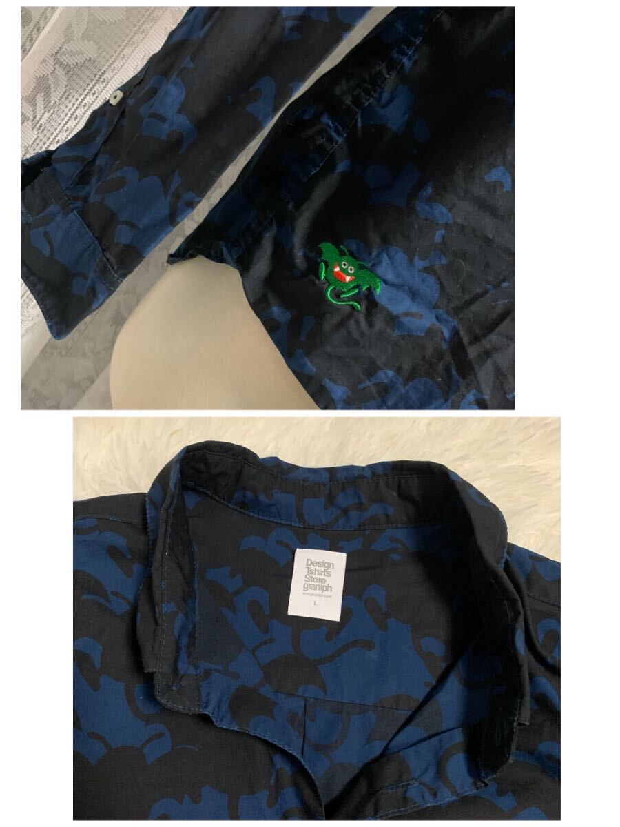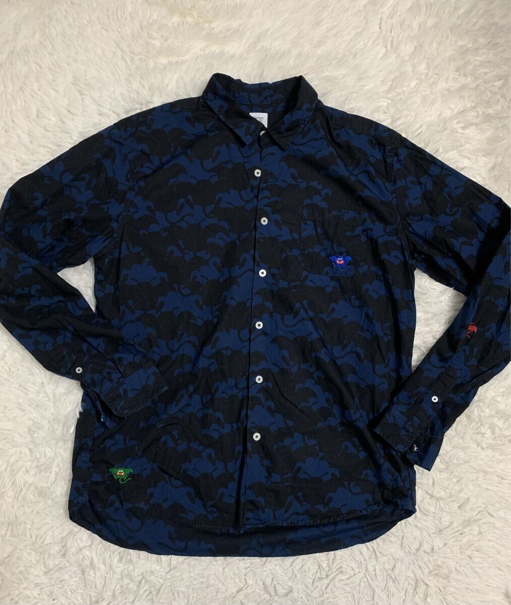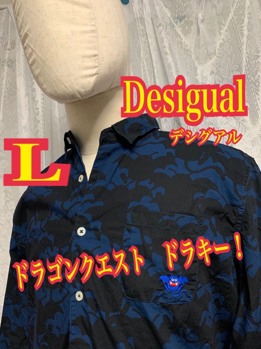 Desigual デシグアル 長袖シャツ ドラキー 刺繍 ドラゴンクエスト ネイビー L