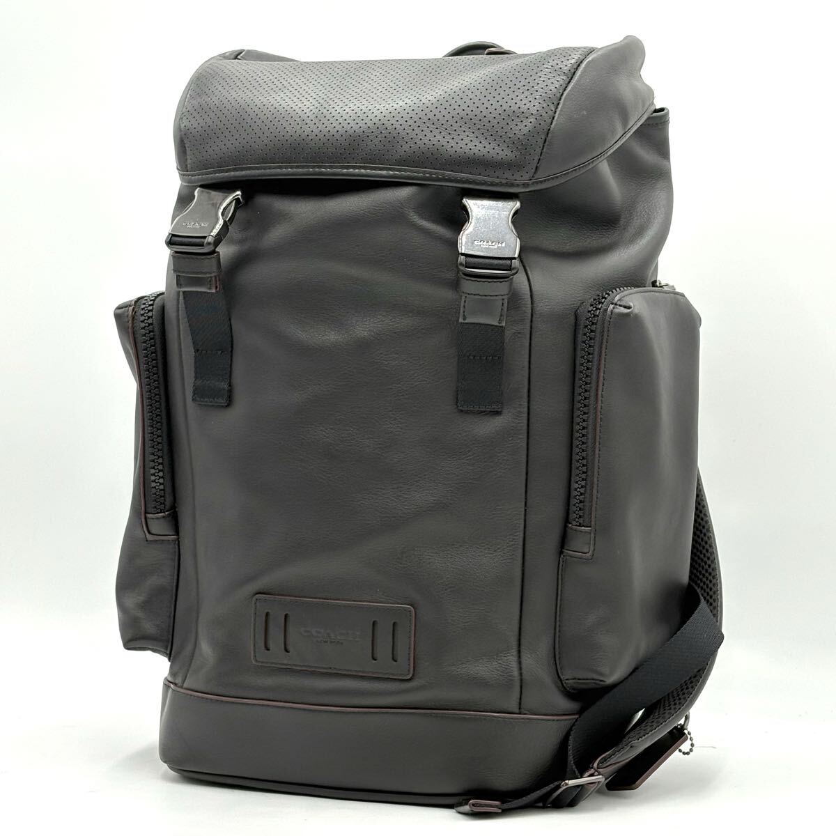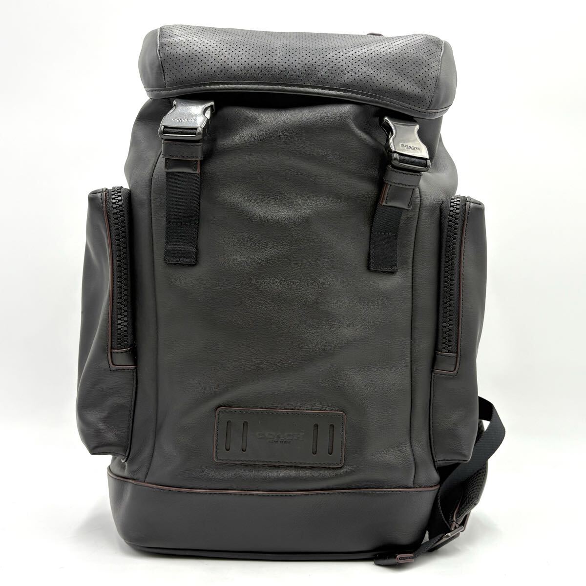 極美品●COACH コーチ レンジャー スムースカーフレザー 本革 バックパック リュック メンズ ビジネスバッグ ブラック 黒 大容量◎