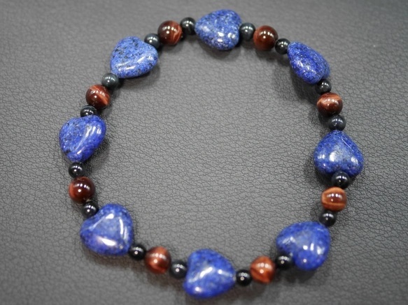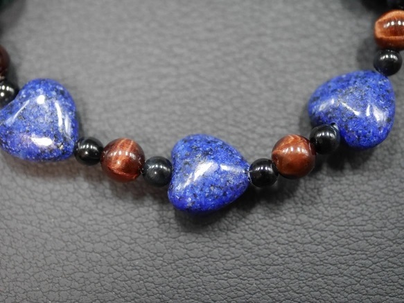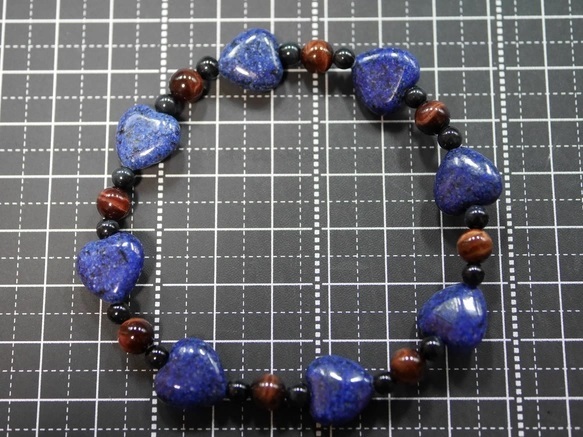 ハートモチーフラピスラズリ×タイガーアイの1連ゴムブレスレット 908