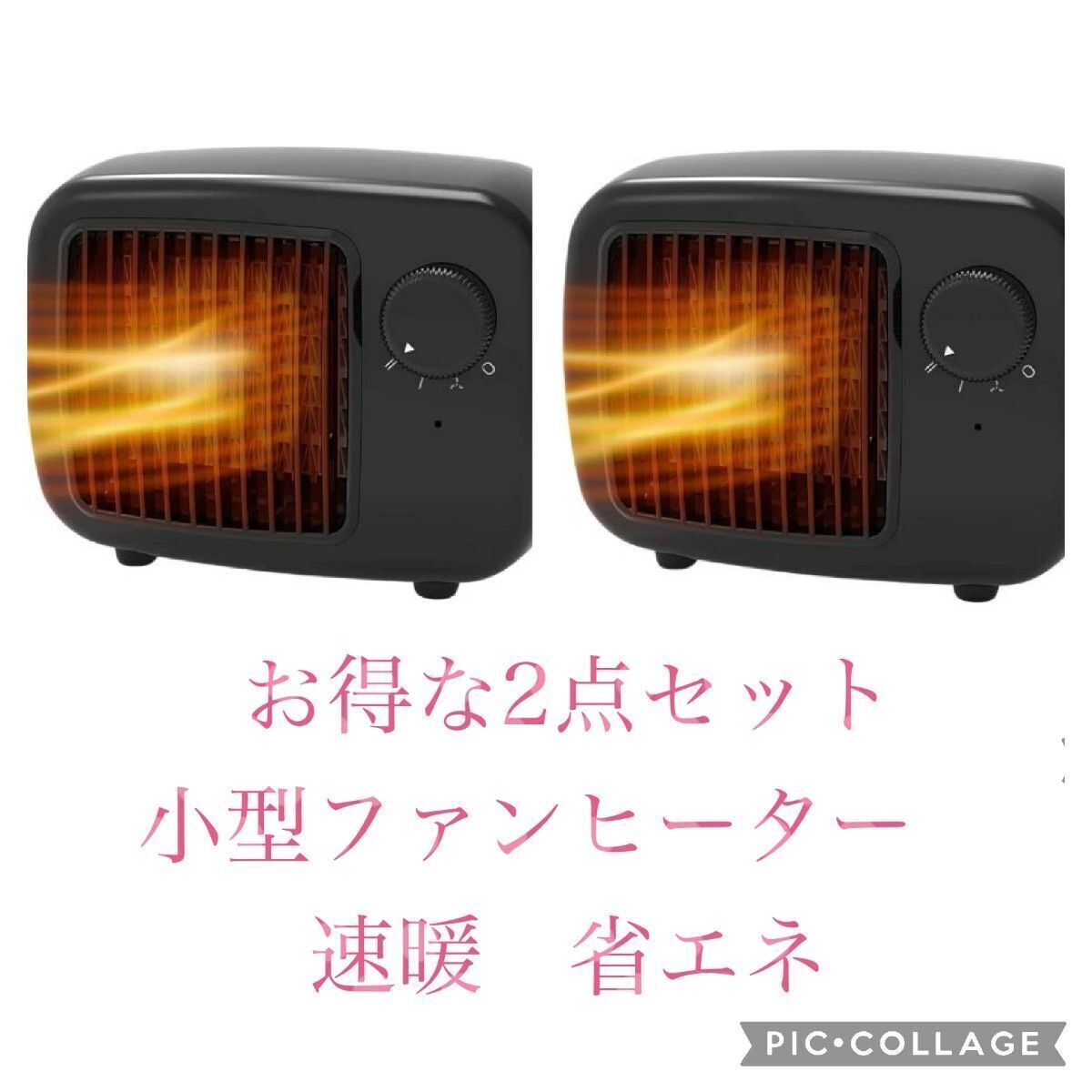2点セット 電気ファンヒーター静音設計 2秒速暖セラミック過熱保護 3段階風量 温風ヒーター 転倒時自動オフ 軽量 省エネ 在庫処分 黒