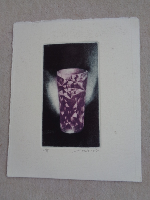 【本物保証】若林文夫  グラス  肉筆  銅版画家