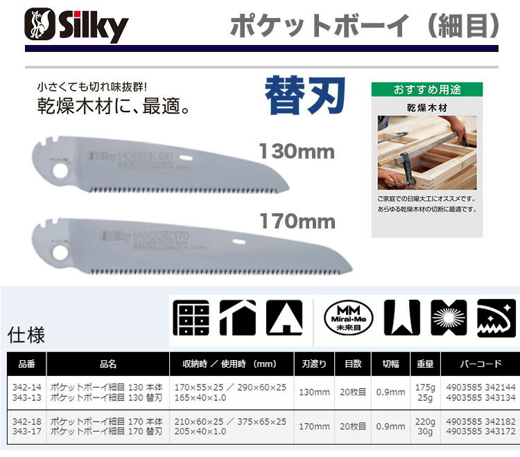 【オススメ】 〈シルキー〉 ポケットボーイ(細目)替刃 130 343-13