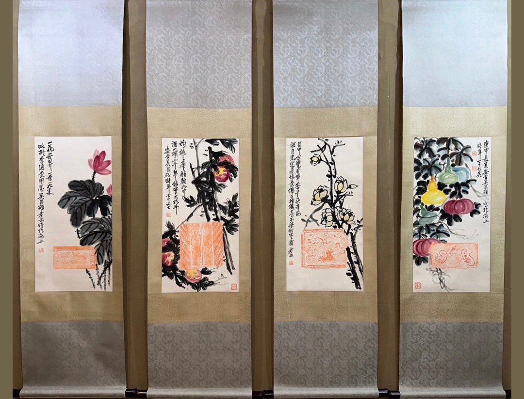 ◇商品名◇ | ■大成美術■【呉昌碩書 紙本 花果図四条屏】(検)近代書画家 中国画 墨寶妙品 中国書道 掛け軸 古美術 骨董 379 | ||