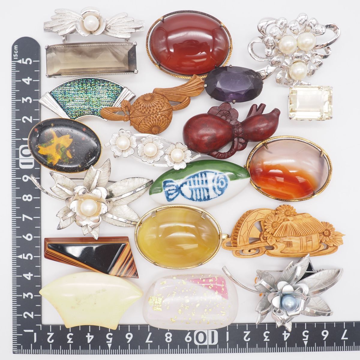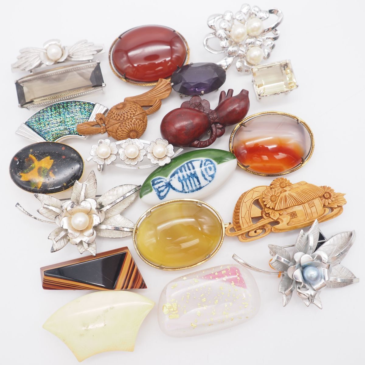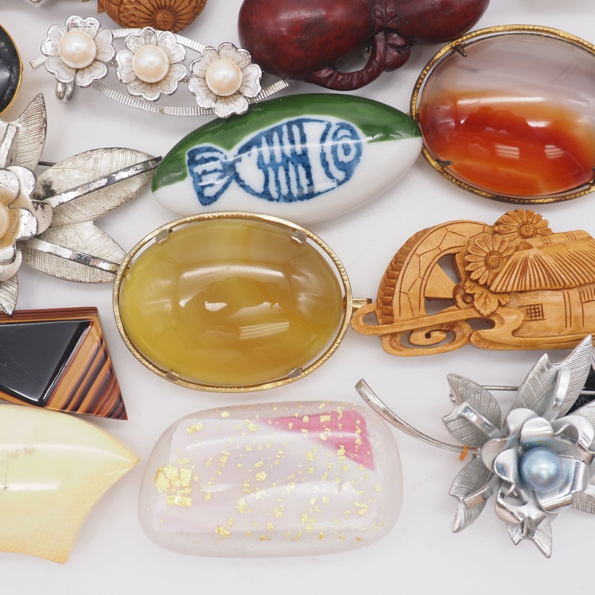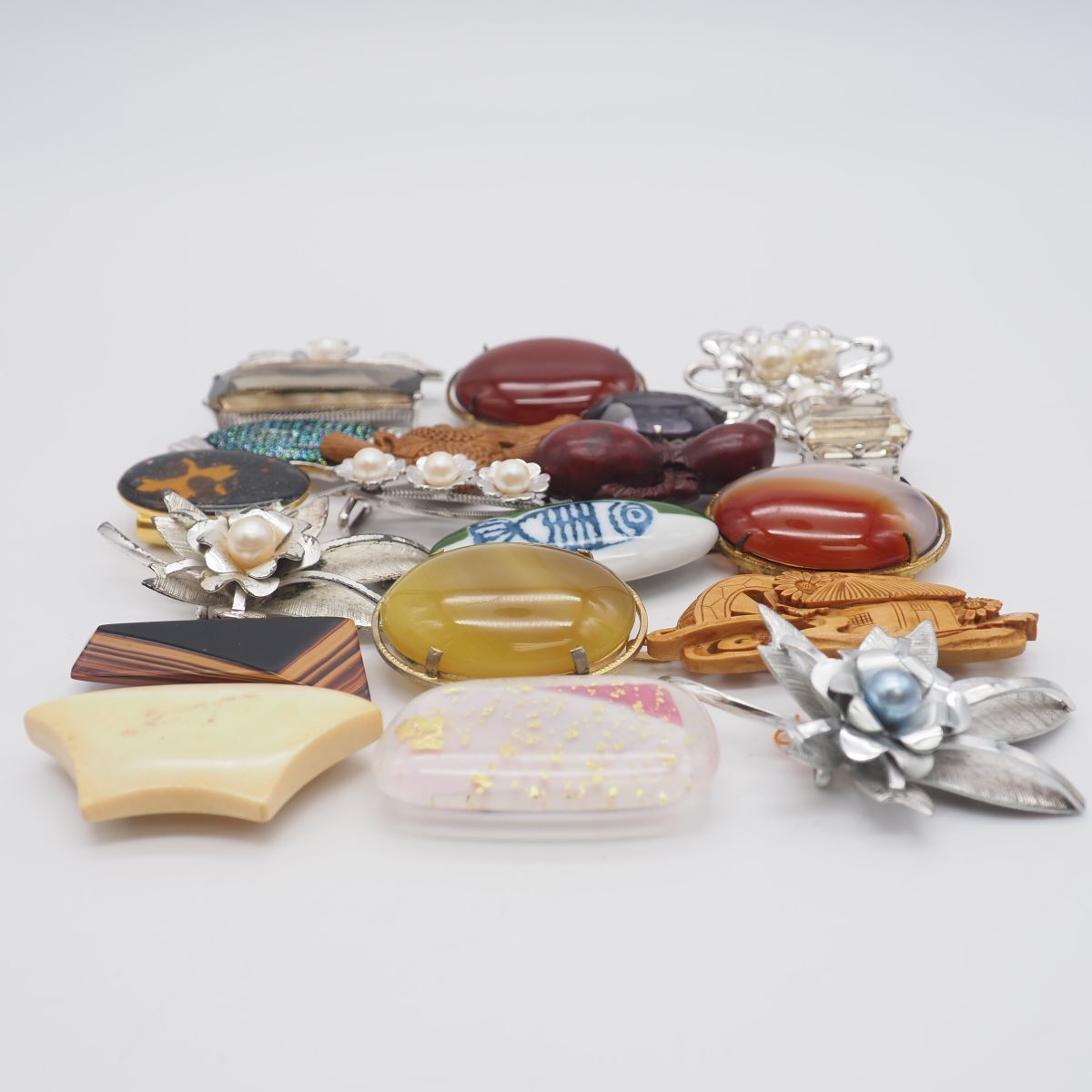 (WOB0911) 1円 帯留め 20個 大量セット 陶器 瑪瑙 メノウ 天然石 シルバー アンティーク 等 まとめて