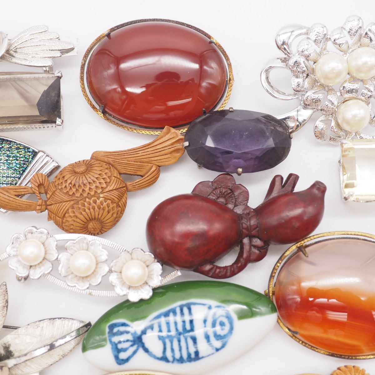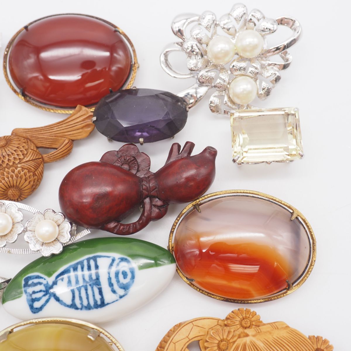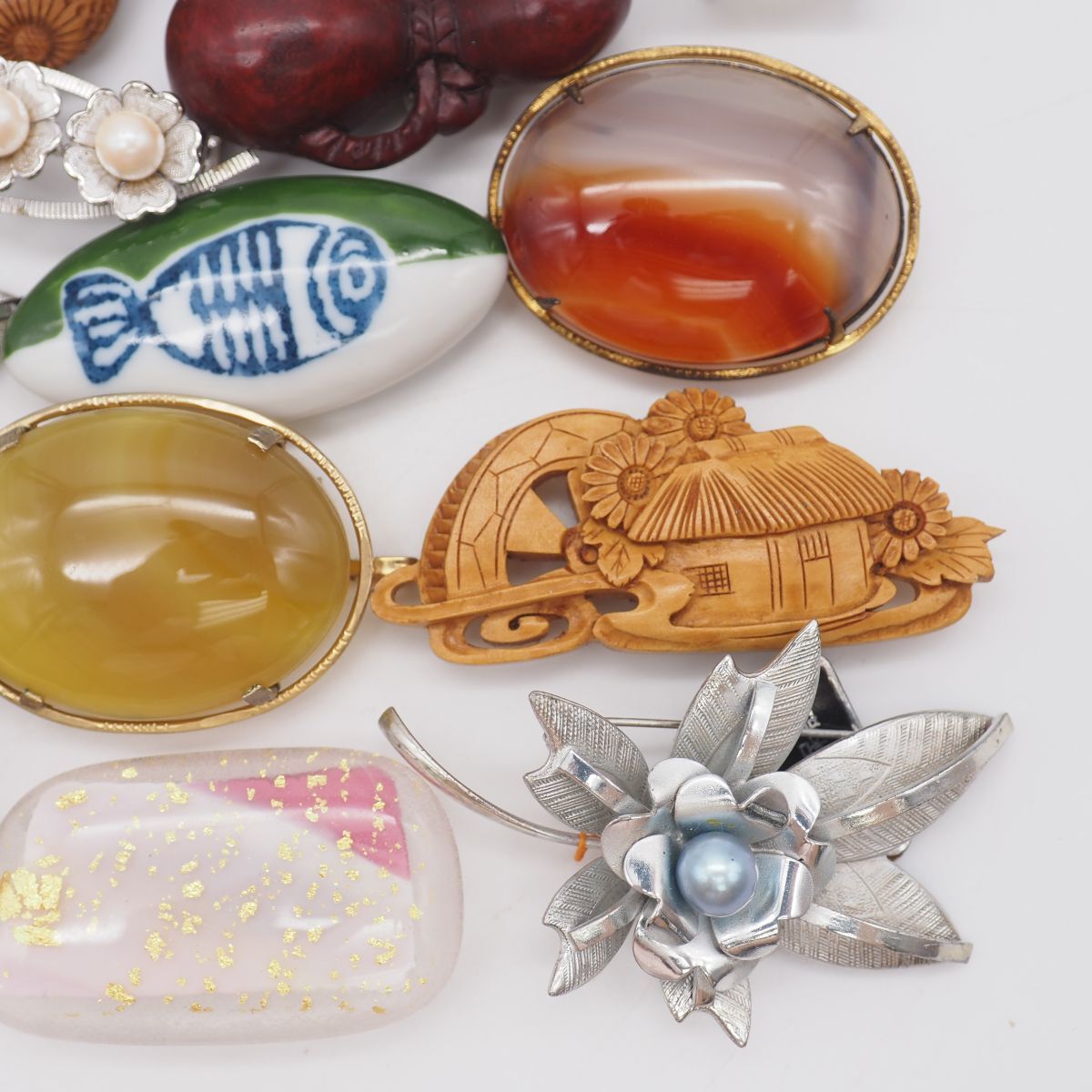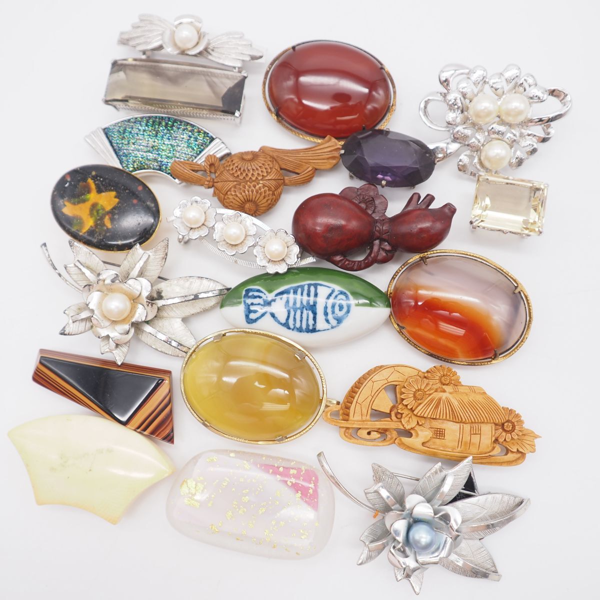(WOB0911) 1円 帯留め 20個 大量セット 陶器 瑪瑙 メノウ 天然石 シルバー アンティーク 等 まとめて