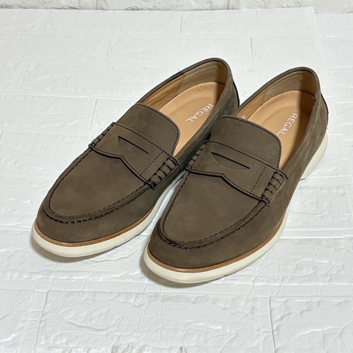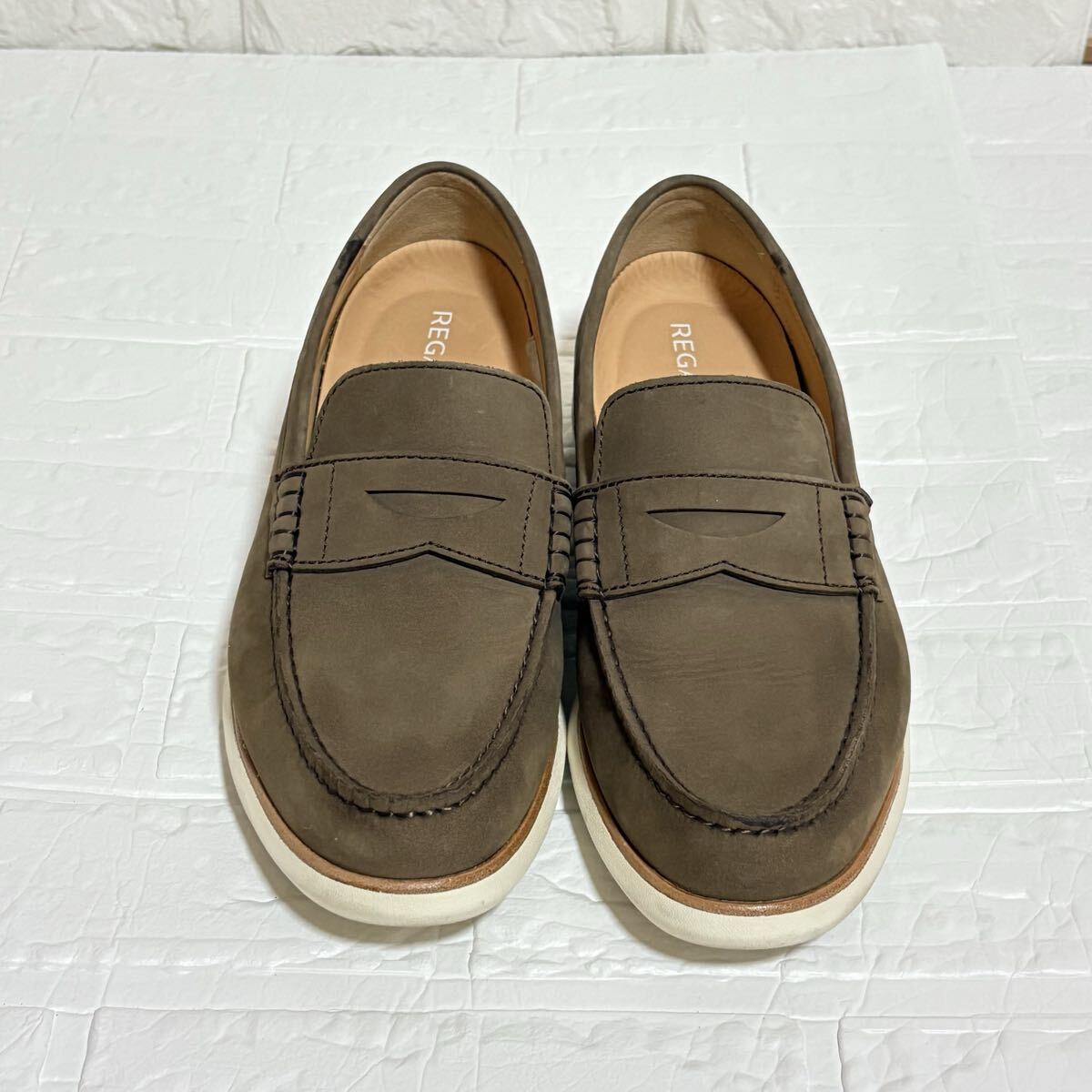こちらは REGAL(リーガル)ローファー メンズシューズ 25cm です。上質なスエード調のブラウンアッパーに、軽快なホワイトソールを合わせた一足で、カジュアルからビジネスカジュアルまで幅広くお使いいただけます。