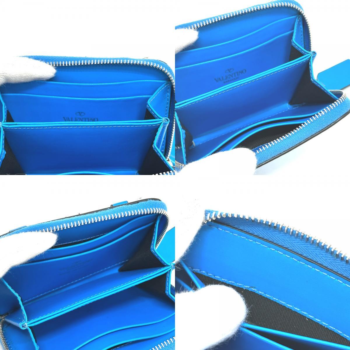 美品 VALENTINO ヴァレンティノ TY0P0R48CFW フルオ ストラップ ラウンドファスナー ウォレット 2つ折り財布 ブルー レディース【中古】