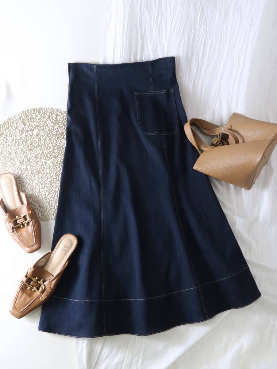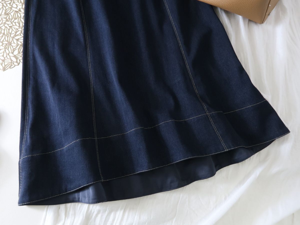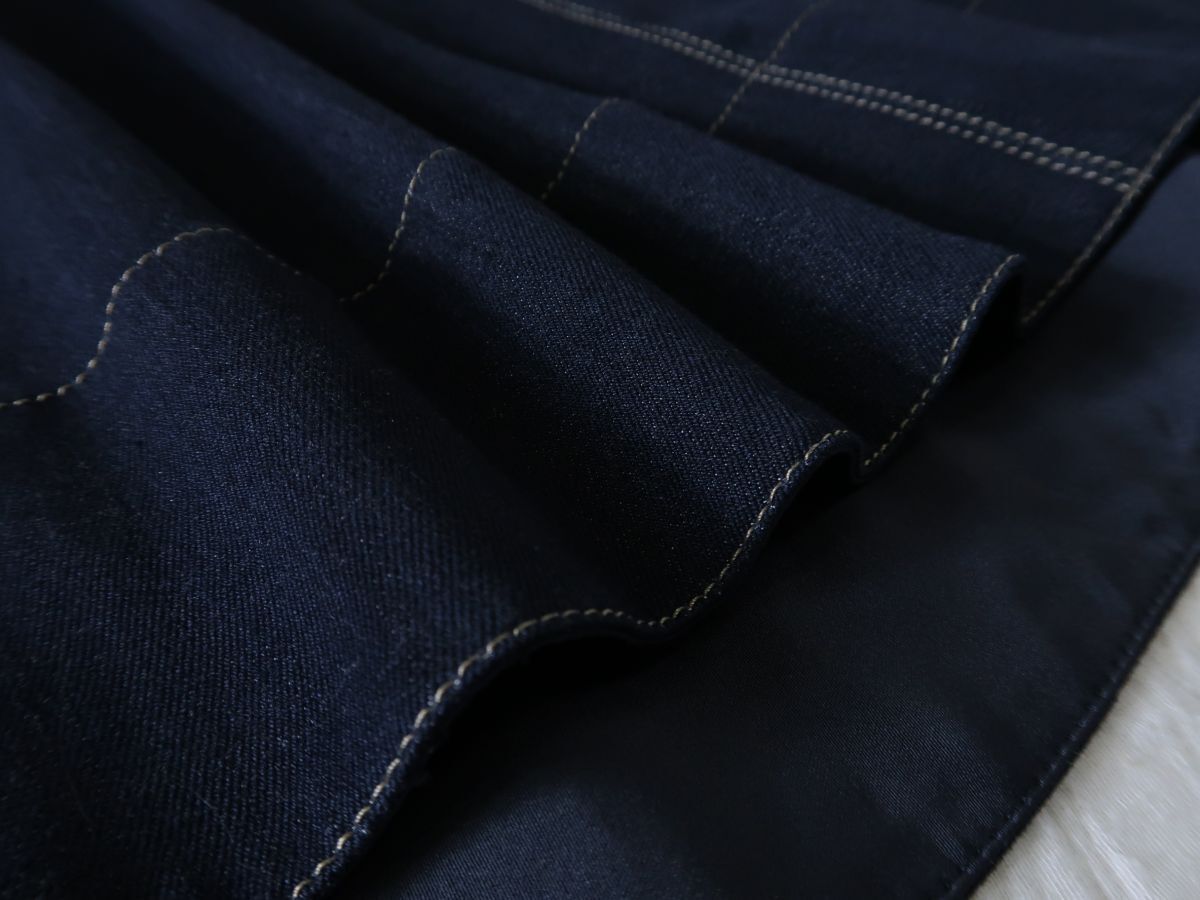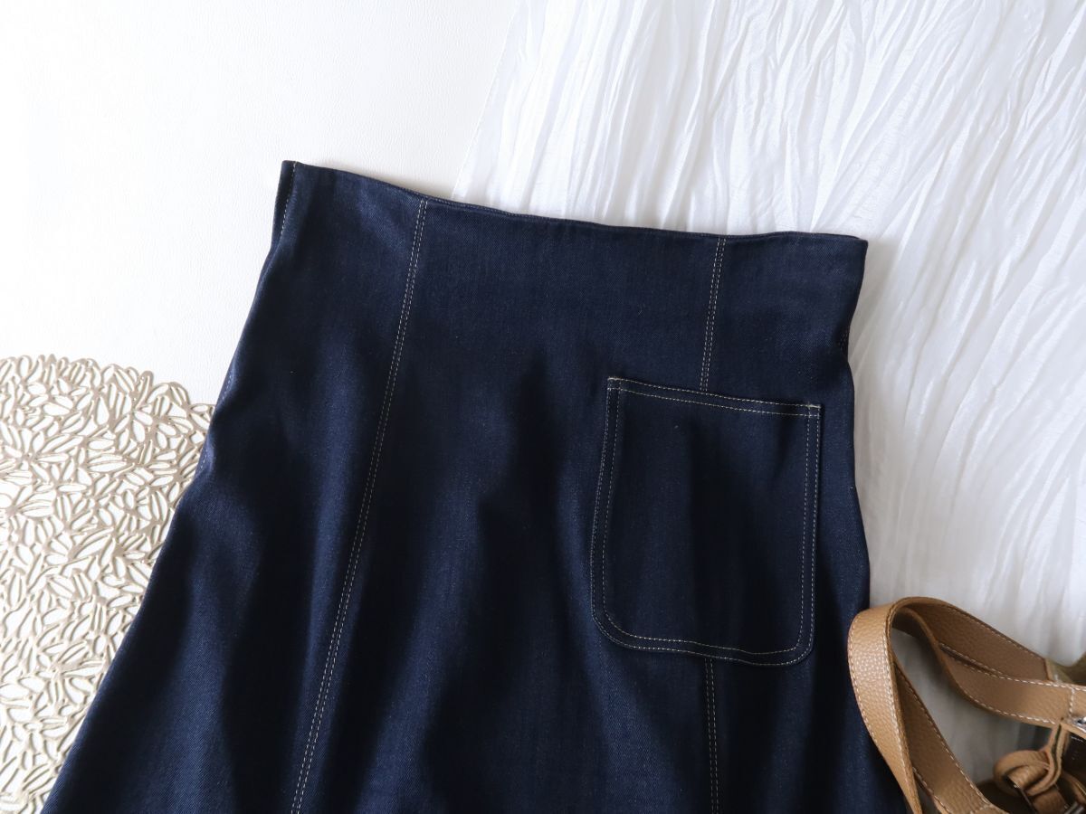 着心地の良いソフトなタッチが魅力のコットンレーヨンのデニムシリーズ。ヨコ糸にレーヨンを使用することでさりげない光沢を持たせ、上品な風合いに仕上げています。スカートはヒップ下から広がるマーメイドシルエットが新鮮な印象の一着。ミニマルなデザインながらスタイリングを女性らしく華やかに演出してくれます。トップスをタックインしたメリハリのある着こなしがおすすめ。反応染めの為インディゴ染めのような色落ちがしにくく、美しい発色を長くお楽しみいただけます。