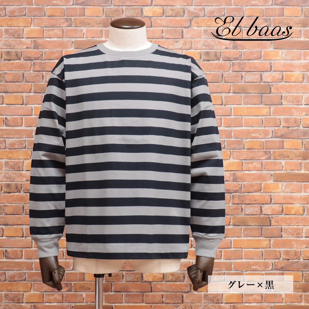 Et baas/Sサイズ/長袖Tシャツ 日本製 綿100% ボーダー カットソー エバース 新品/グレー×黒/kf394/