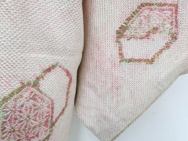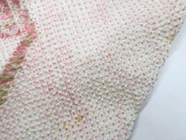 リサイクル商品のため、羽裏、両袖、しみ汚れ、ヤケがございますが着用可能なお品です。 地色は 薄ピンク 黄緑です。 1枚目の画像が近いお色かと思われます。 素材は正絹です。 |