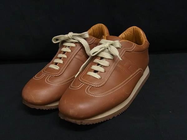 1円 ■美品■ HERMES エルメス クイック レザー スニーカー 表記サイズ39 (約25.5cm) 靴 シューズ メンズ ブラウン系 FP4855