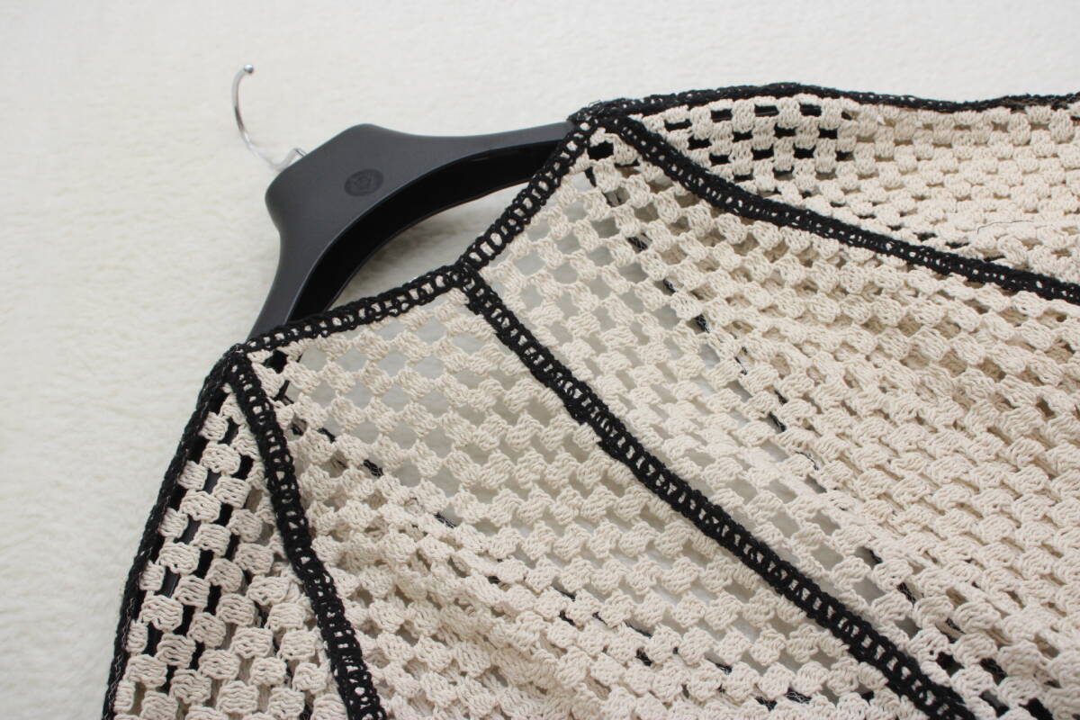 4245 新品タグ付き 前リボンクロシェカーディガン