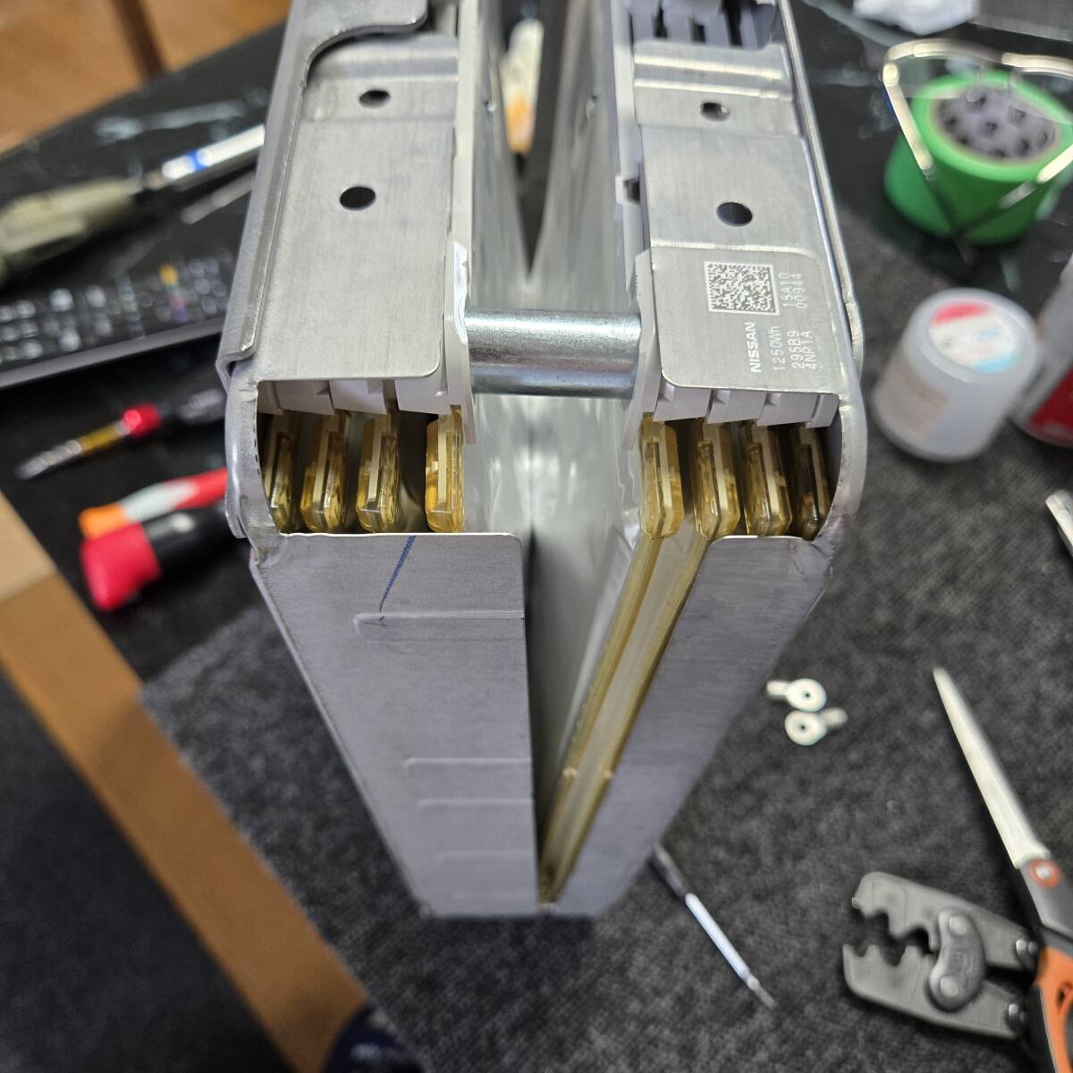 ・日産のリーフバッテリーは膨張を考慮し、そこそこの圧力をかけて組み上げております。