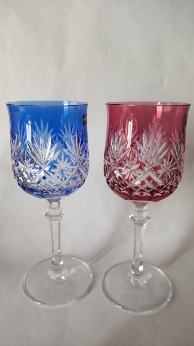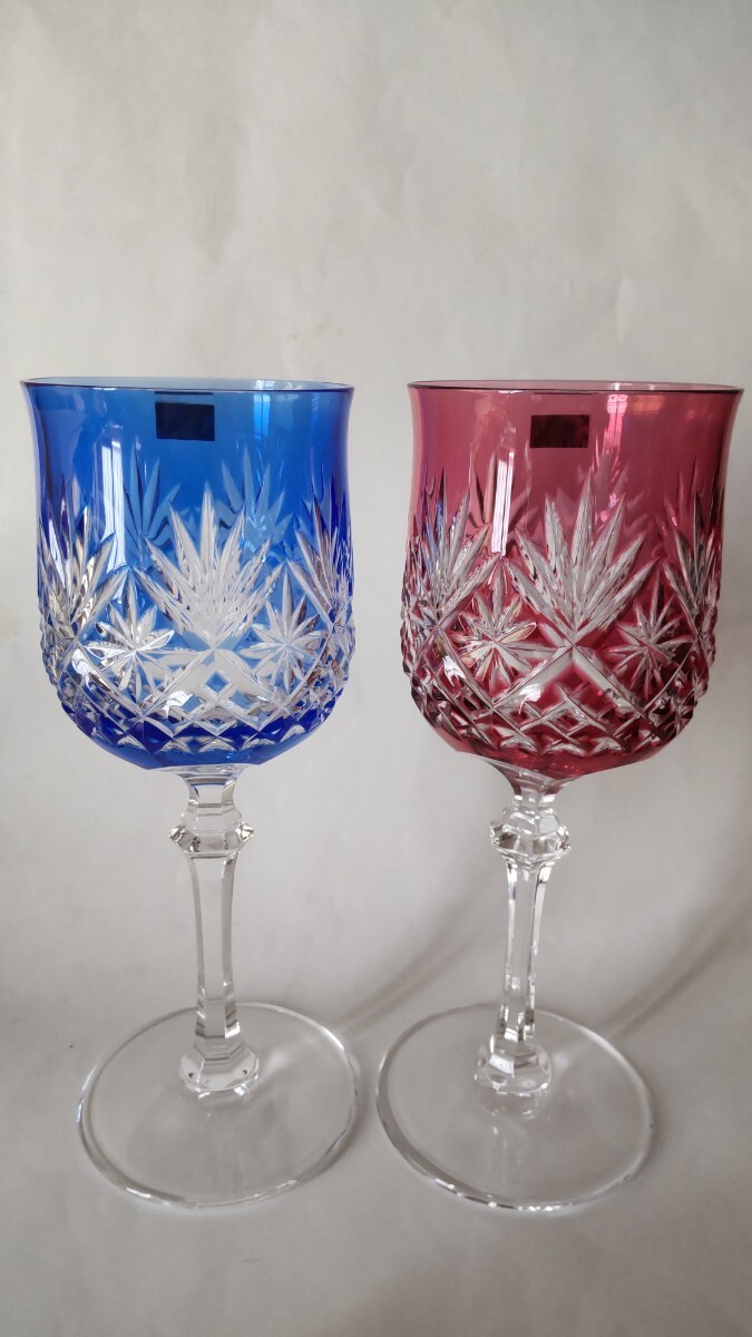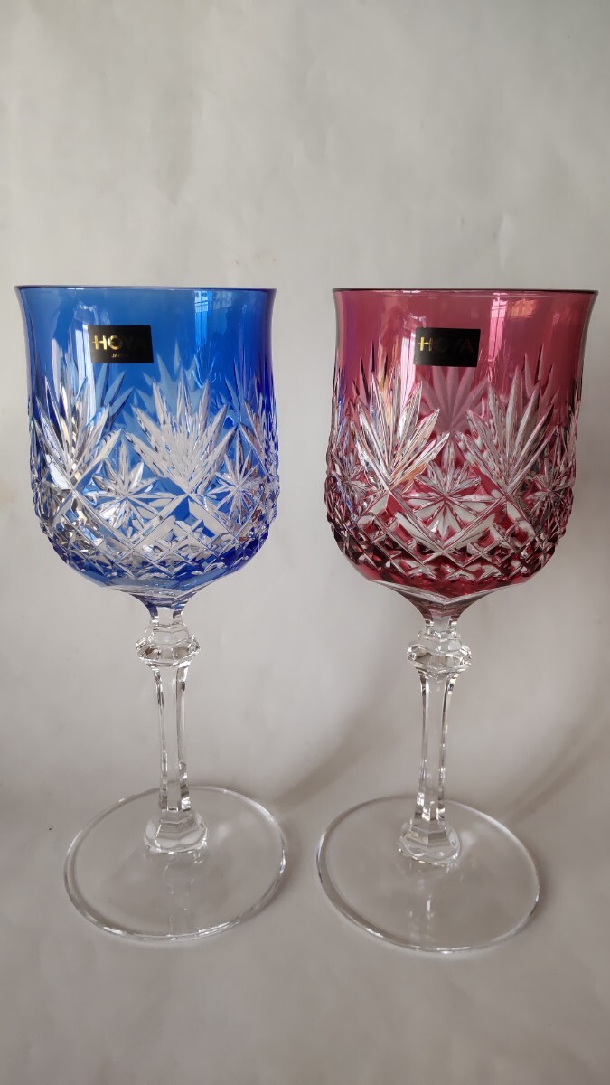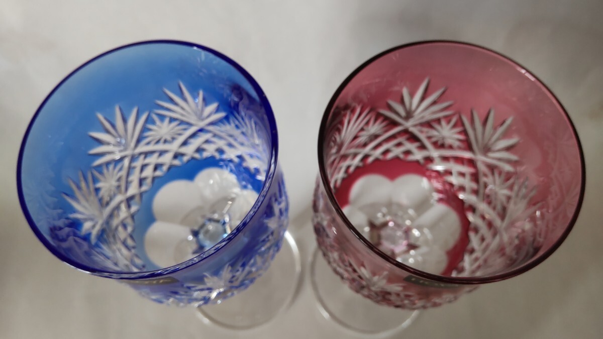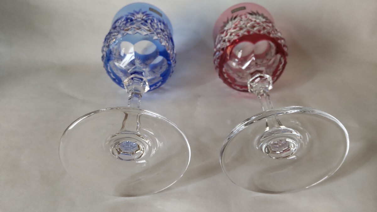 ホヤクリスタル 色被せ 切子 ワイングラス