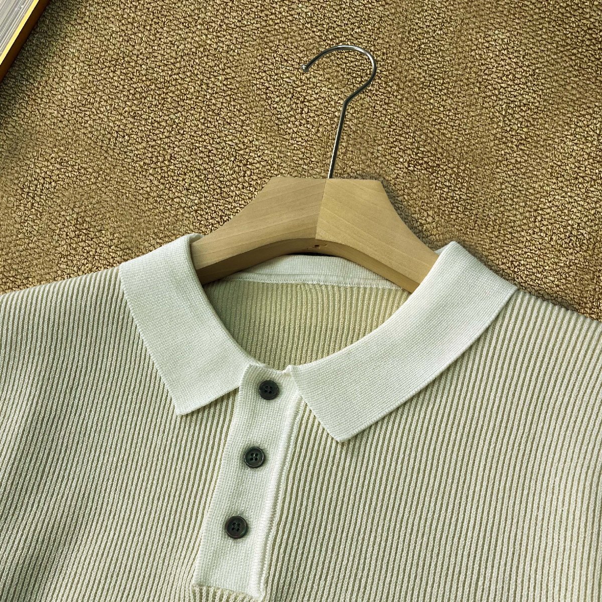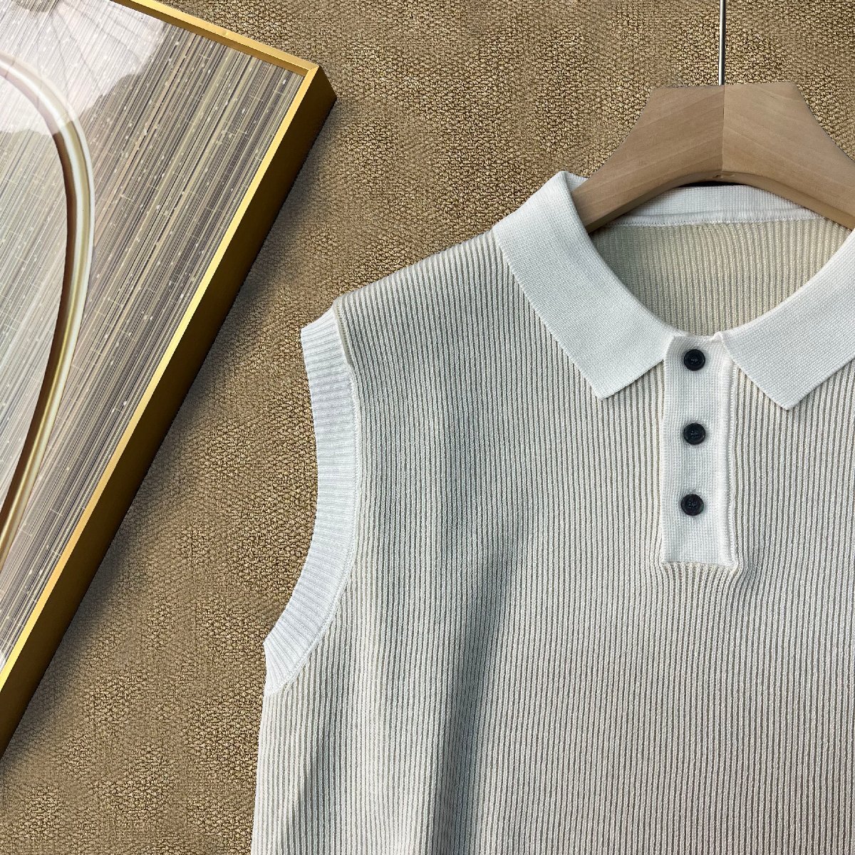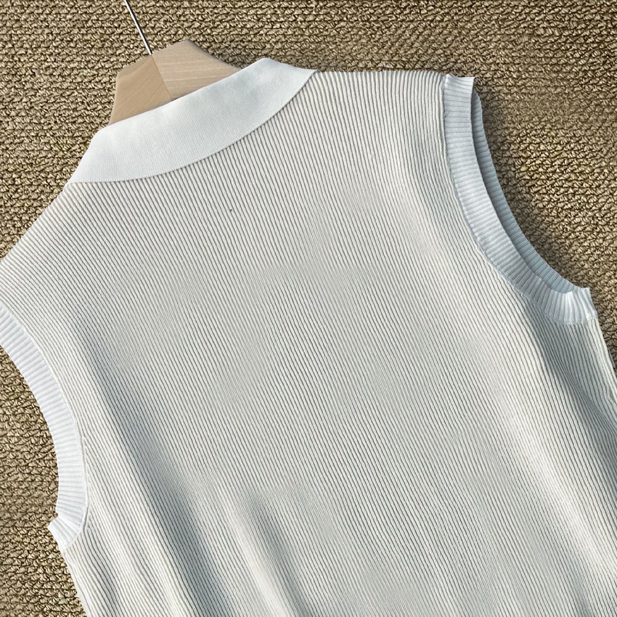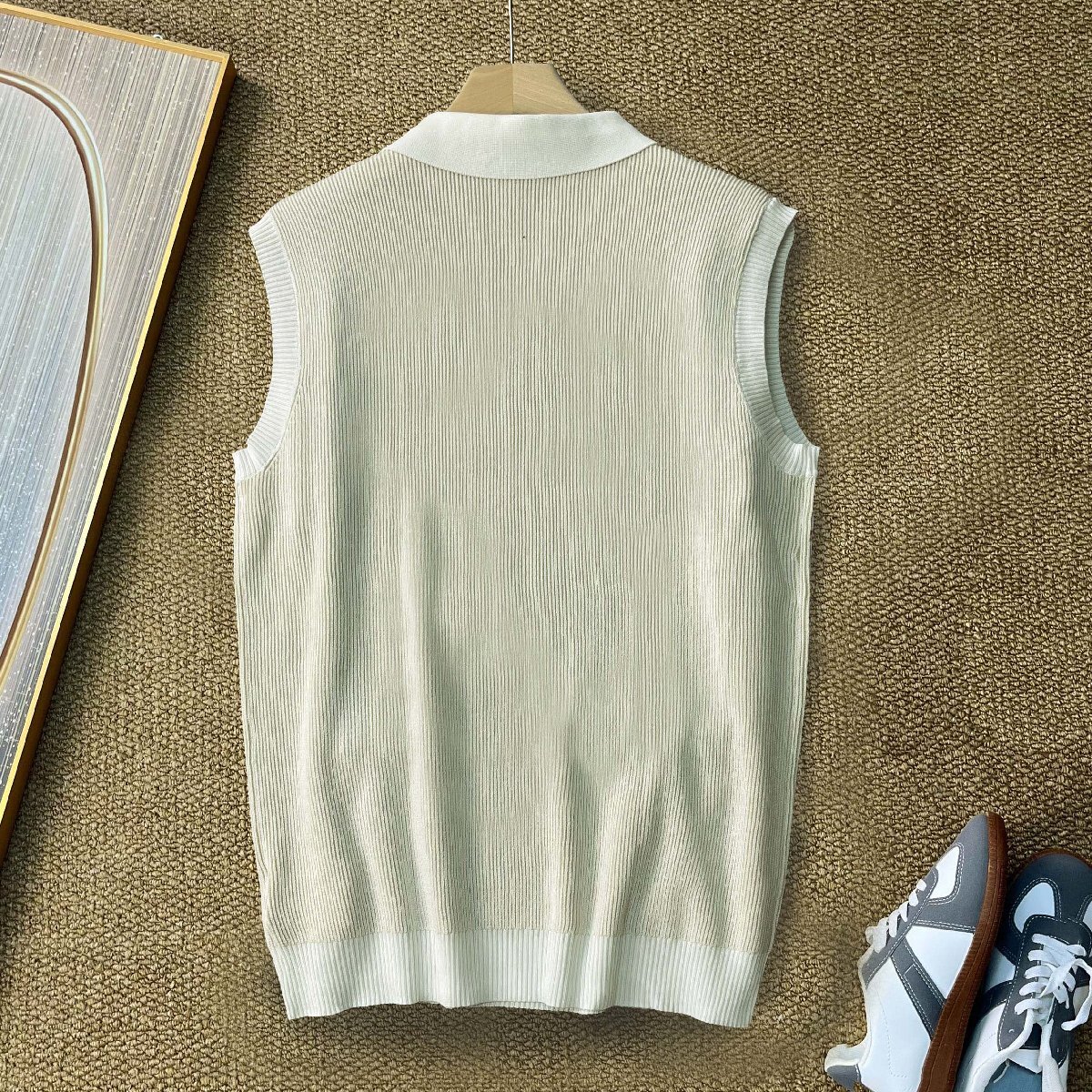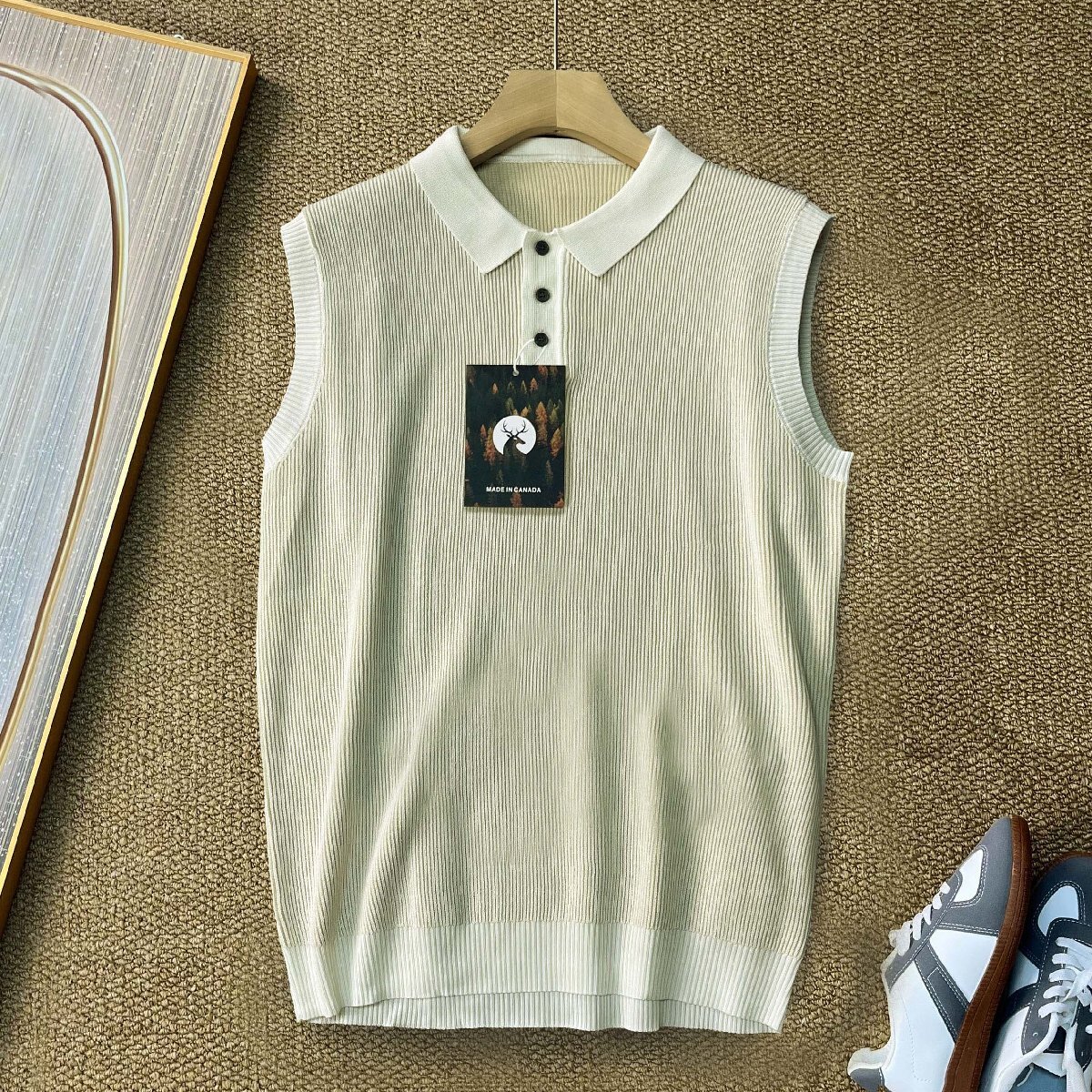 ベスト カナダ製造 上品 ウール混 通気 ニット ノースリーブ ポロネック 切替 シンプル スリム トップス インナー 男女兼用 通勤 夏 SIZE:L