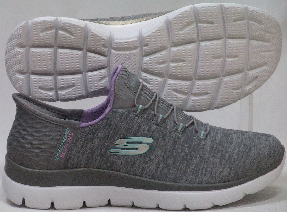送料無料 スケッチャーズ SUMMITS-DAZZLING HAZE スリップインズ グレー 23.0cm ハンズフリー スリッポン スニーカー 149937W GYMT