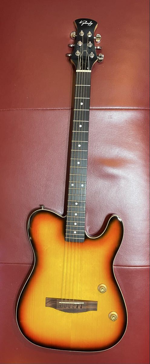 V-glorifyのテレキャスタイプのエレアコです。ブリッジにピエゾのピックアップが組み込まれています。1ボリューム、1トーンです。小傷程度で大きな傷はありません。エレアコなんですが、重量が結構重く3.7キロくらいあります。サンバーストのボディが綺麗です。