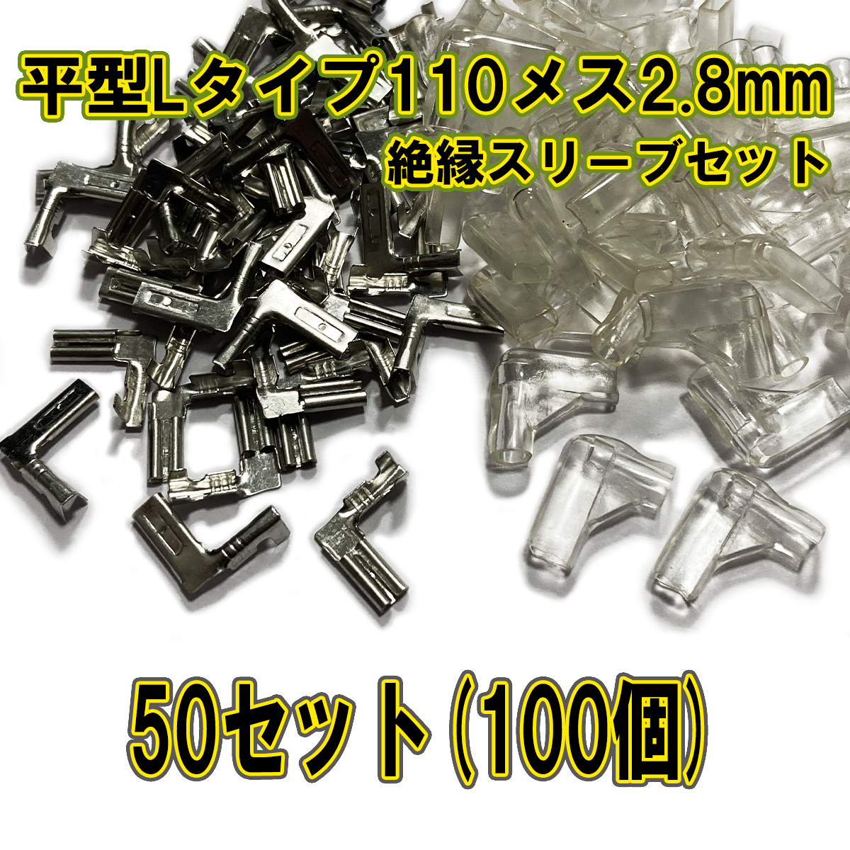 ファストン端子 平型 110型 L型 2.8mm メス、絶縁スリーブ 50セット(100個)【オーディオ、バイク、アケコン、アーケードコントローラー】