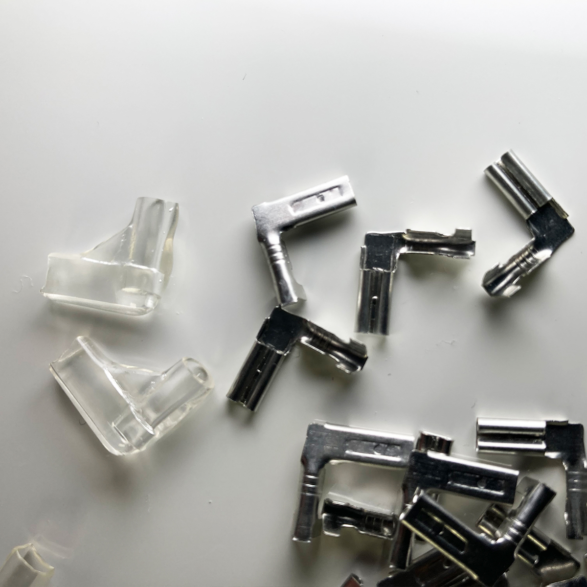 ファストン端子 平型 110型 L型 2.8mm メス、絶縁スリーブ 50セット(100個)。