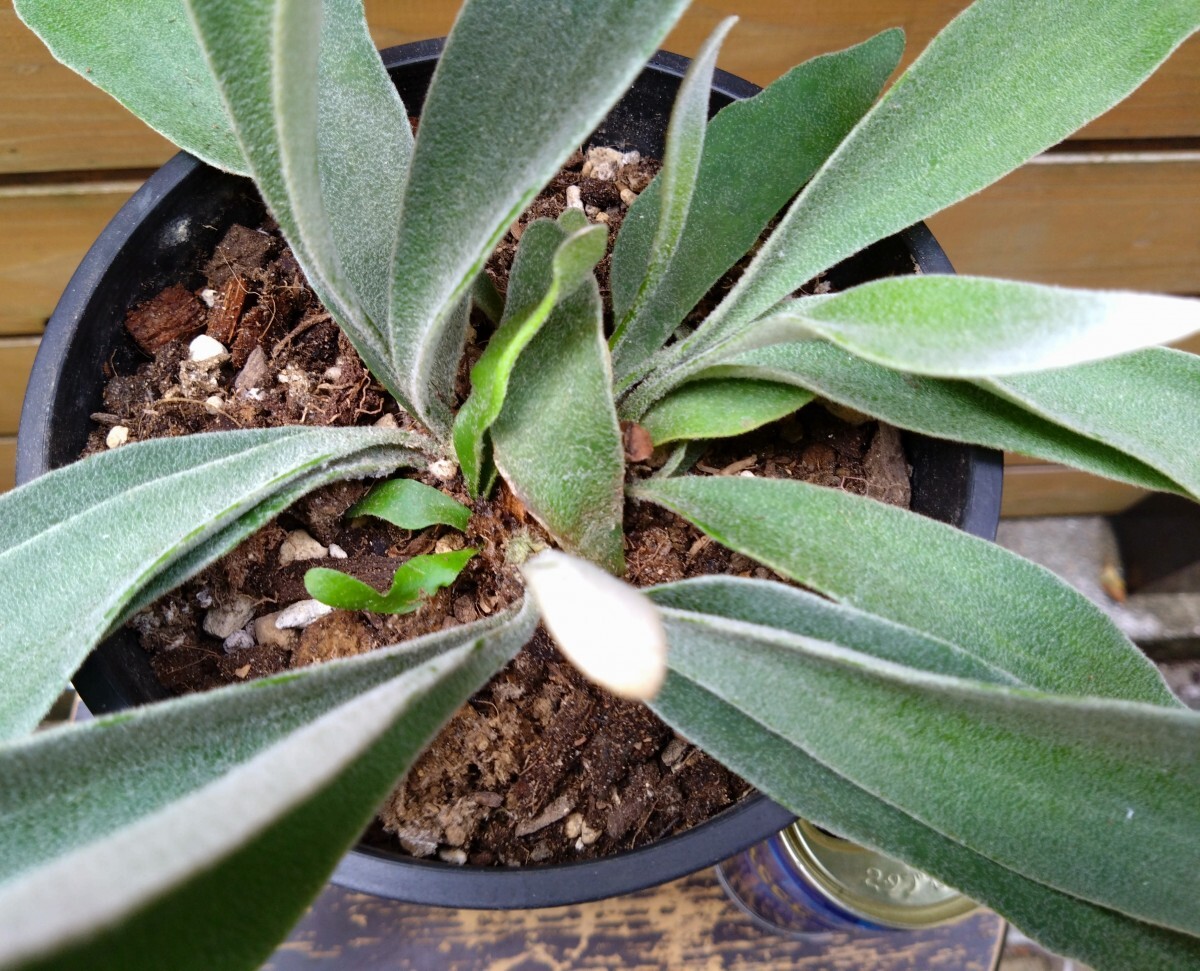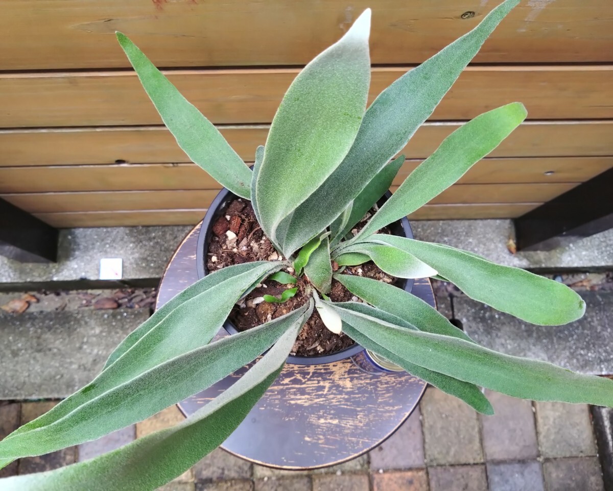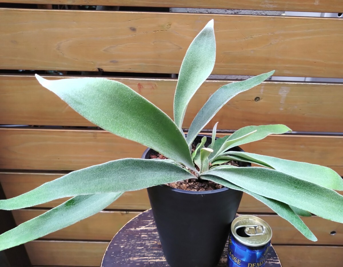 コウモリランの中では比較的小型の品種で、「星状毛(せいじょうもう)」と呼ばれる全身を覆うように広がる白く短い毛が特徴で、美しい銀色になるのが特徴の品種です