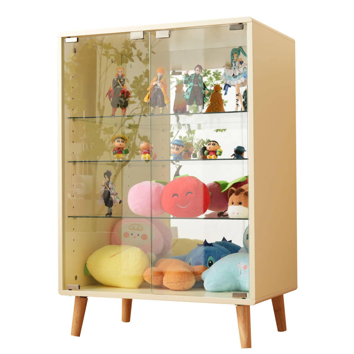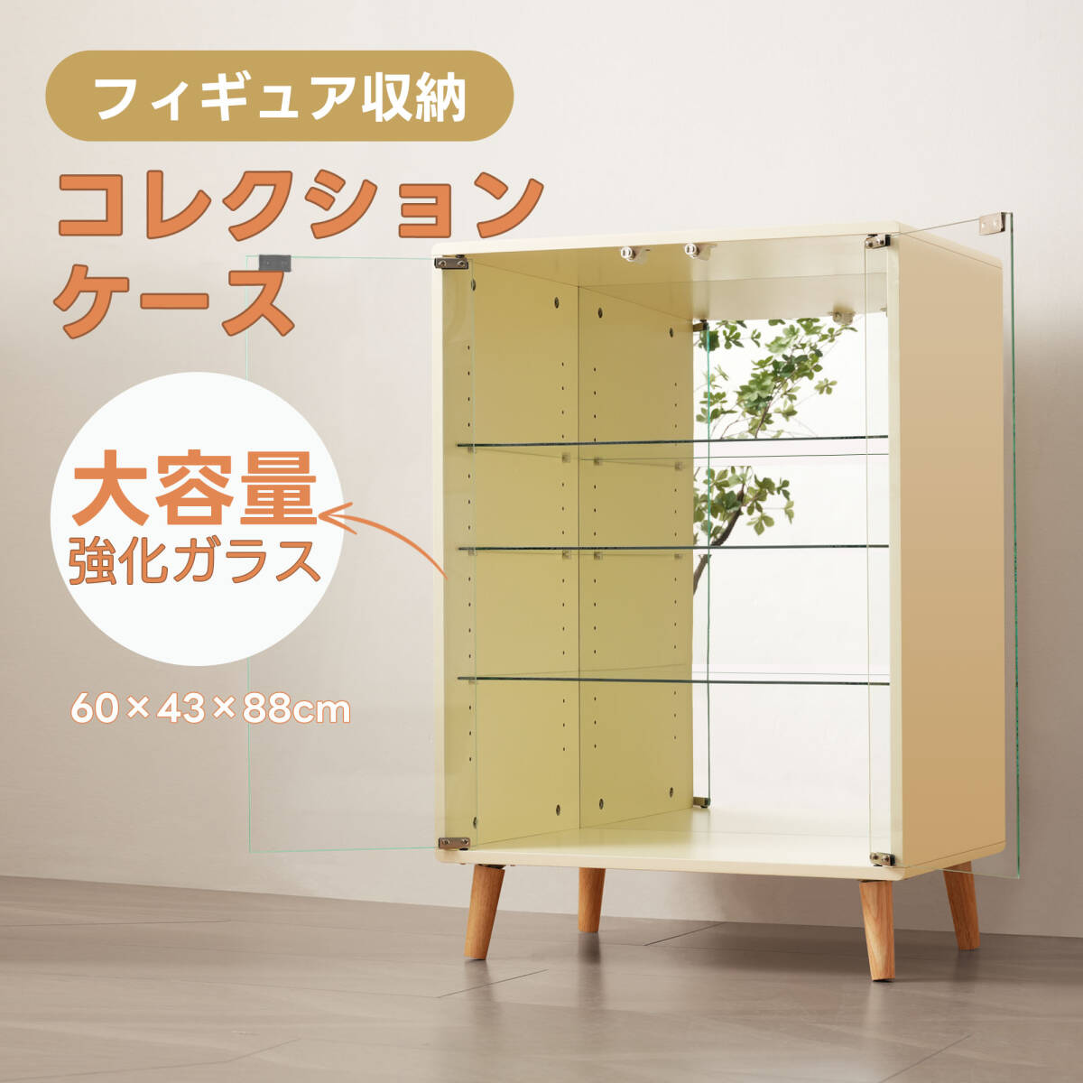 コレクションケース ワイド 大容量 コレクションシェルフ ガラスディスプレイキャビネット 4段 サイズ:幅60*奥行43*高さ88CM ベージュ