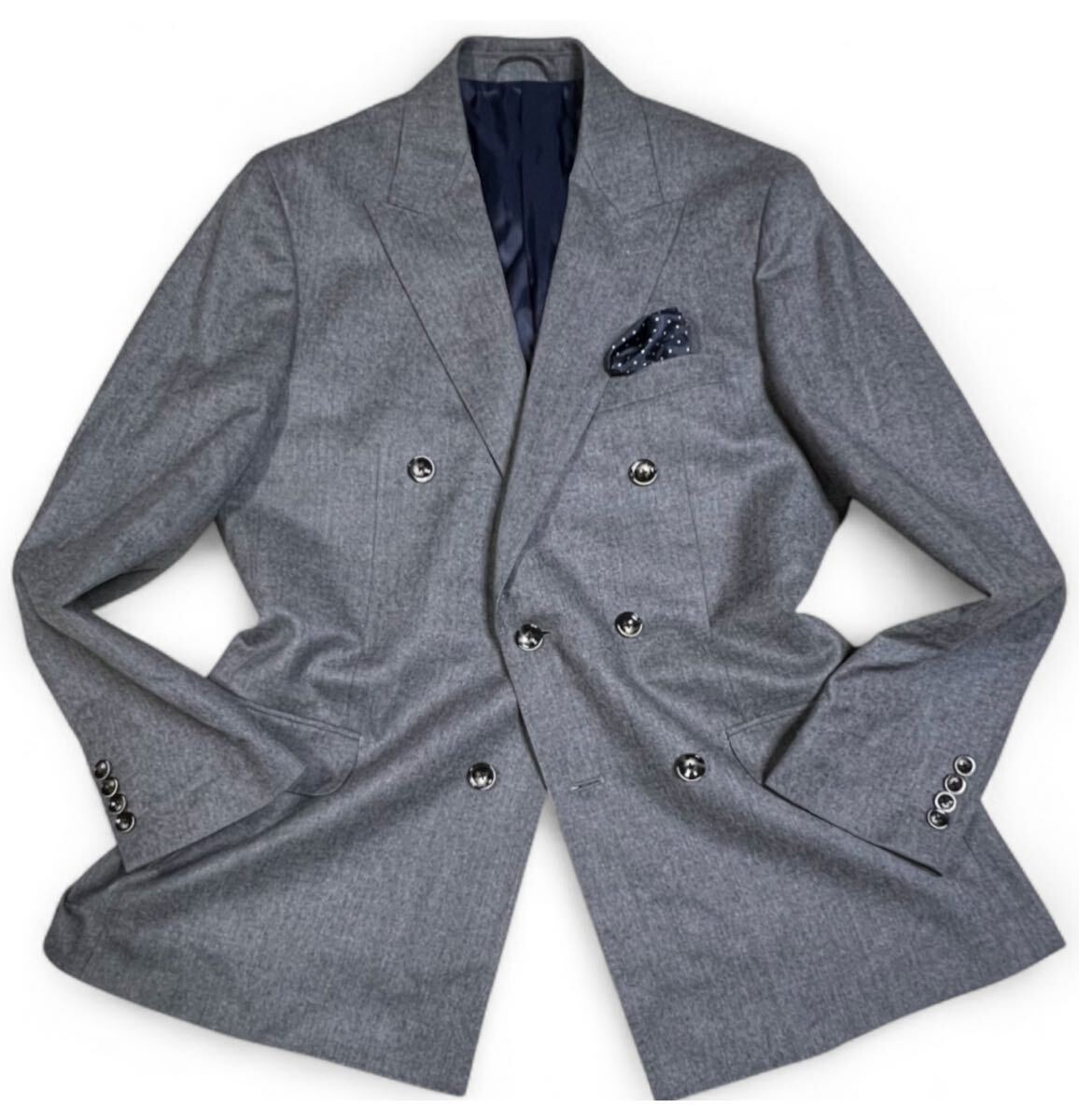 ● 【美品】イタリア製生地 カノニコ super120 CAFE SOHO ダブルブレザー グレー テーラードジャケット