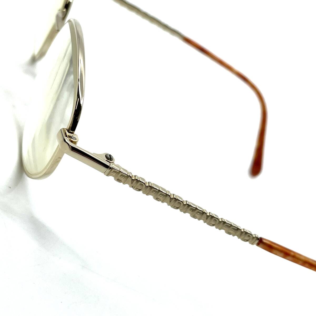 【良品】FENDI フェンディ 度入り 眼鏡 メガネフレーム フルリム ロゴ ゴールド べっ甲風 まだら模様 アイウェア メガネ FE-5001