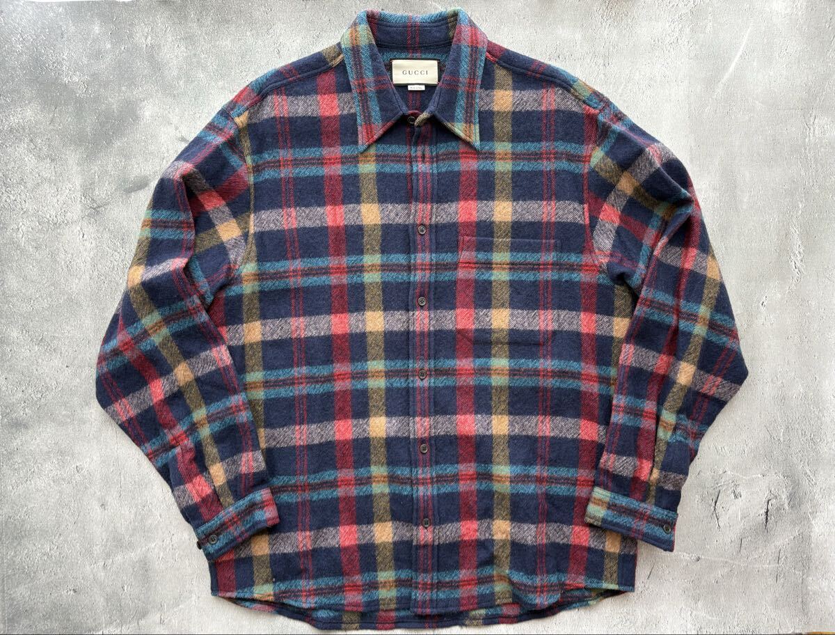 ・一目見て上質なウールと分かる綺麗な色使いのチェックネルシャツ