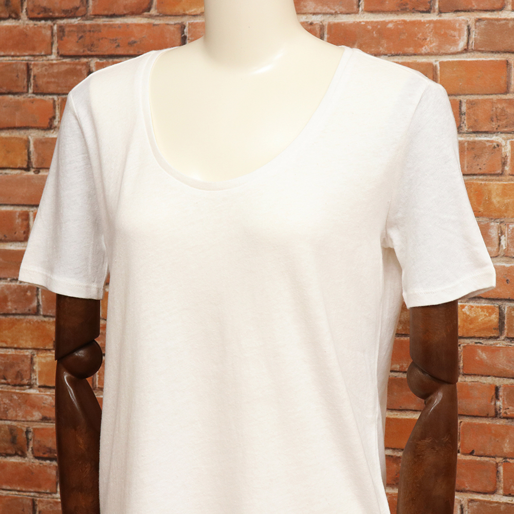 上質なリネン混ジャージー素材で仕立てた、洗練された印象のストレートシルエットTシャツ。肌にやさしくなじむソフトな風合いと通気性に優れた軽やかな着心地で、暑い季節も快適に過ごせます。深めのオーバルネックがデコルテを美しく引き立て、シックな抜け感を演出。サイドにはさりげなくスリットを入れ、後ろ裾をやや長めに仕上げることで、横から見たときにも美しいラインを叶えます。シンプルながらも計算されたディテールが光る一枚。大人のカジュアルスタイルに上品なリラックス感をプラスしてくれるアイテムです。