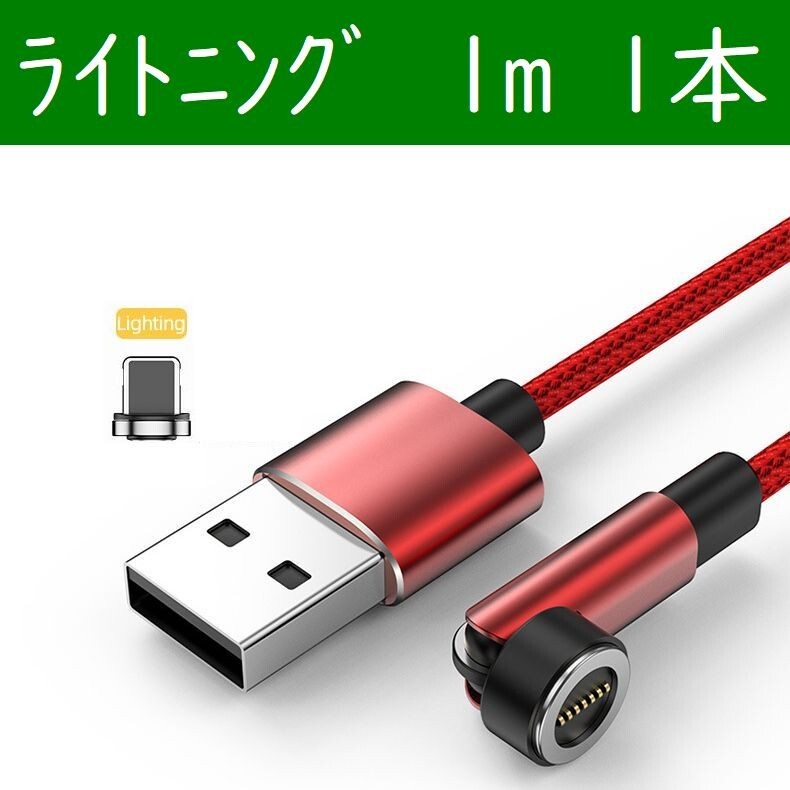 ライトニング1m赤色1本曲るマグネット磁石式USB充電通信ケーブル iPhone