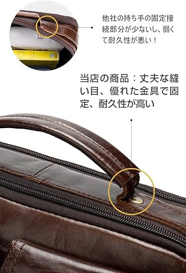 • 【大容量で多機能の収納デザイン】大容量でお好みで収納できます。2層式ファスナーポケットデザインで、メイン層はiPad、財布、B5手帳、サングラス、折り畳み傘、モバイルバッテリーなど収納でき、サブファスナーポケットはファイル、iPad、ノートなど収納可能です。それに、内装ファスナーポケットもついており:銀行カード、名刺、おこ釣りなどの小物を綺麗に収納できます。または、外側に2個の縦式小物入れが配置されており、スマホなどを入れるには適用です。