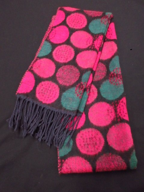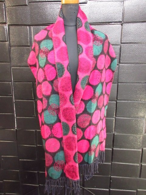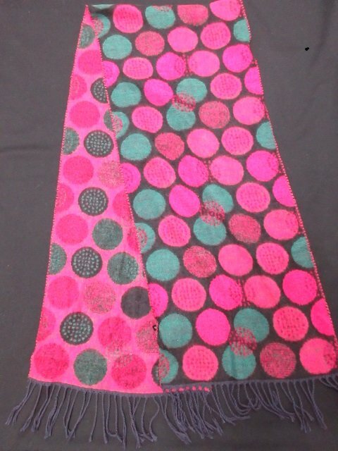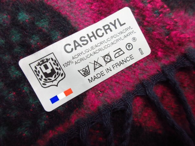 t8729 未使用保管品 MIC マフラー フランス製 サイズ75 アクリル100% ピンクxブラック系 全長約164cm マツオインターナショナル