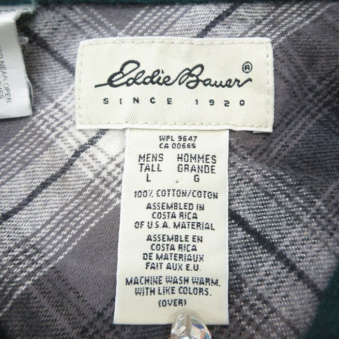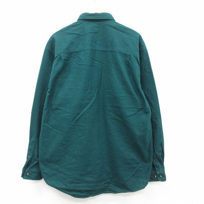 【商品名】 XL★古着 エディーバウアー 長袖 フランネル シャツ メンズ 00年代 00s ロング丈 コットン 緑系【spe】