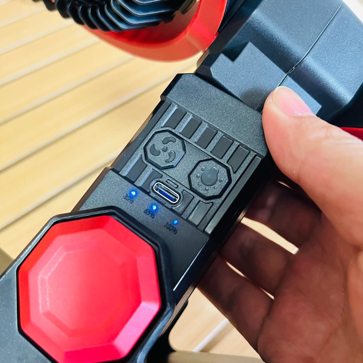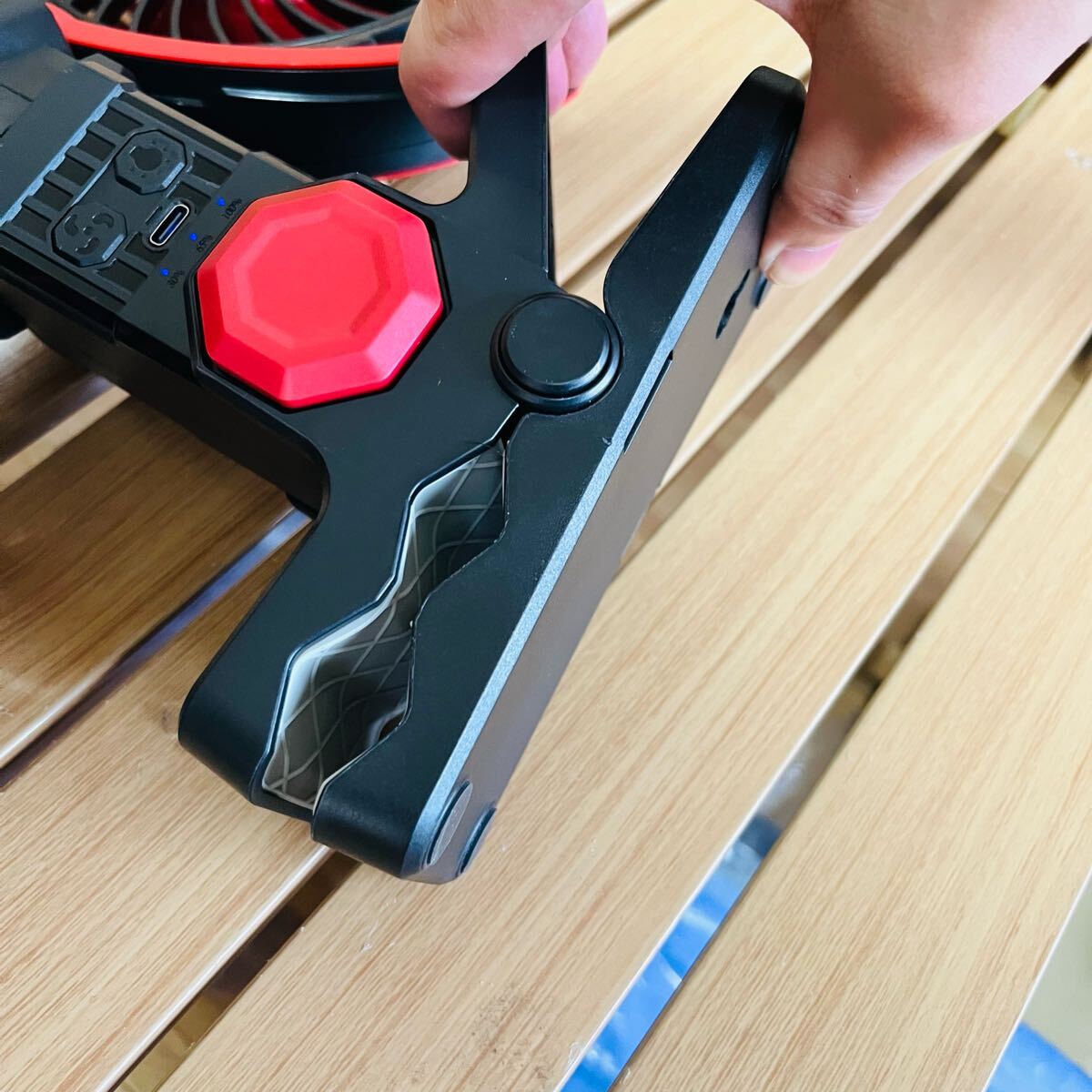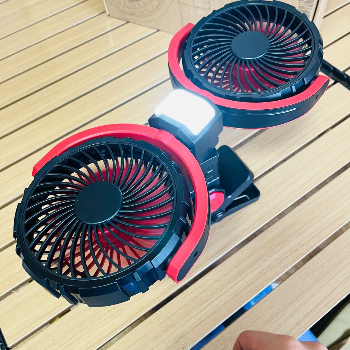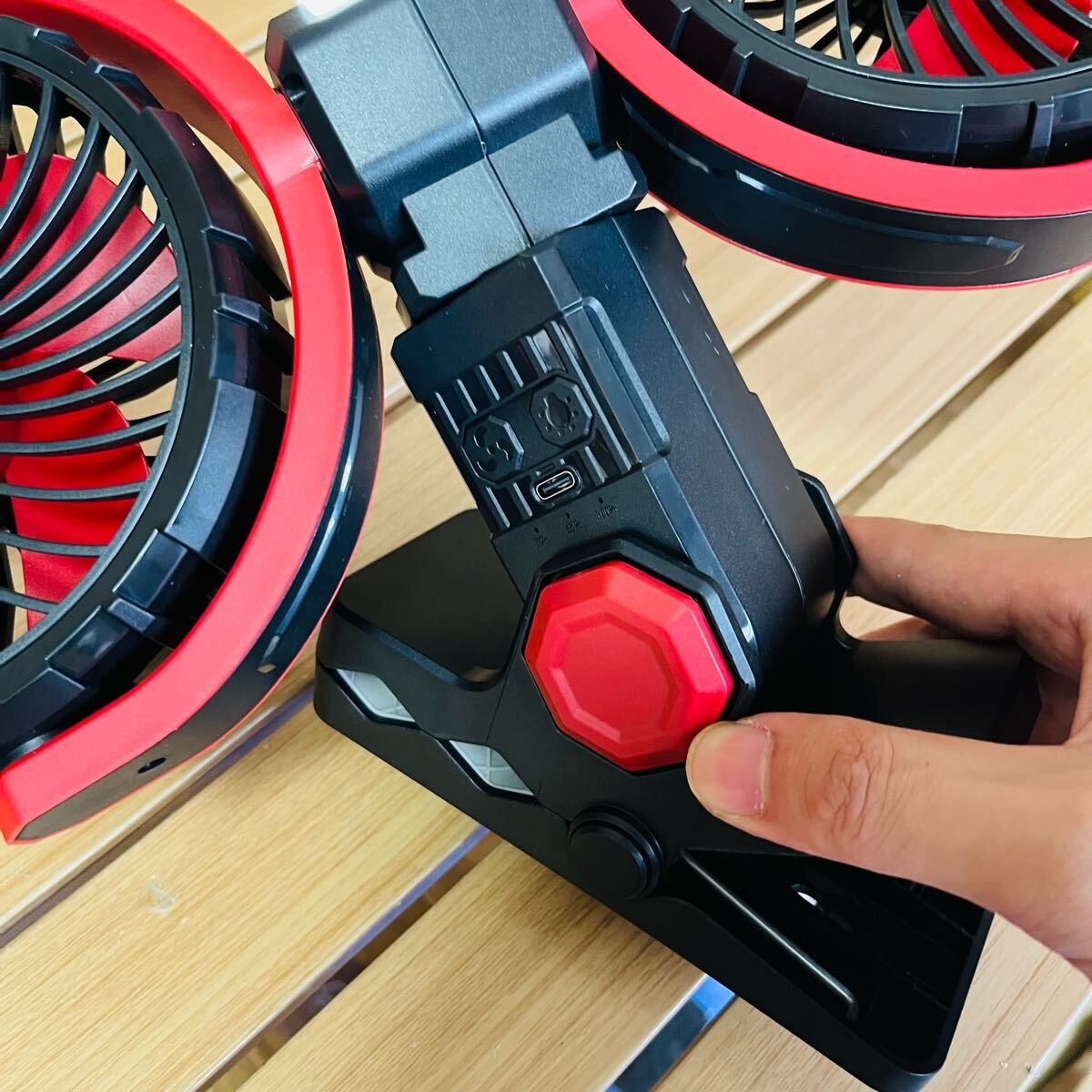 アウトドア 多機能扇風機 ポータブルファン LEDライト付き 4000mahx2 USB充電式 多角度調整 キャンプ 充電式扇風機 38.9x25.2x7.5cm