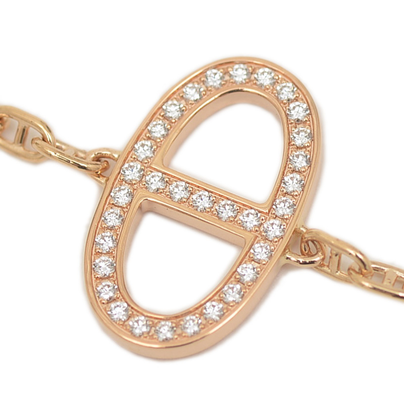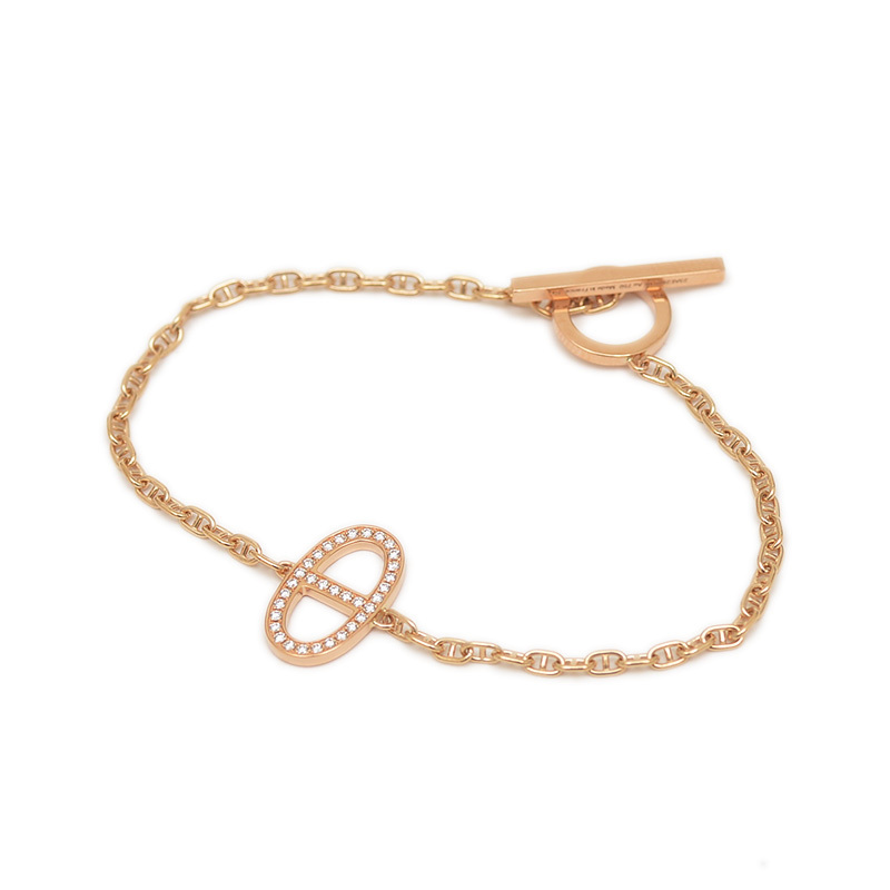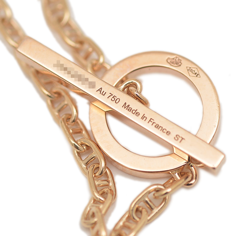 | 商品特徴 | ブランドを象徴する錨の鎖「シェーヌダンクル」モチーフを、エレガントなK18ピンクゴールドで再解釈したブレスレットです。滑らかな曲線と立体的なフォルムが特徴で、手元に上品な華やかさとモダンな存在感を添えます。単独で着けても、他のジュエリーと重ね付けしても美しく、どんなスタイルにも洗練された魅力をプラスする逸品です。 |