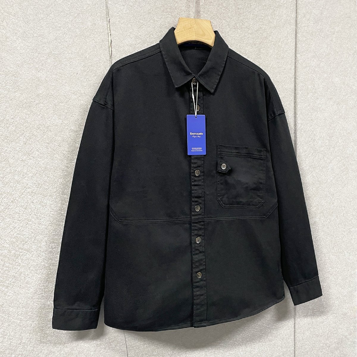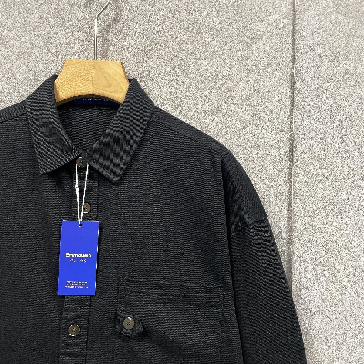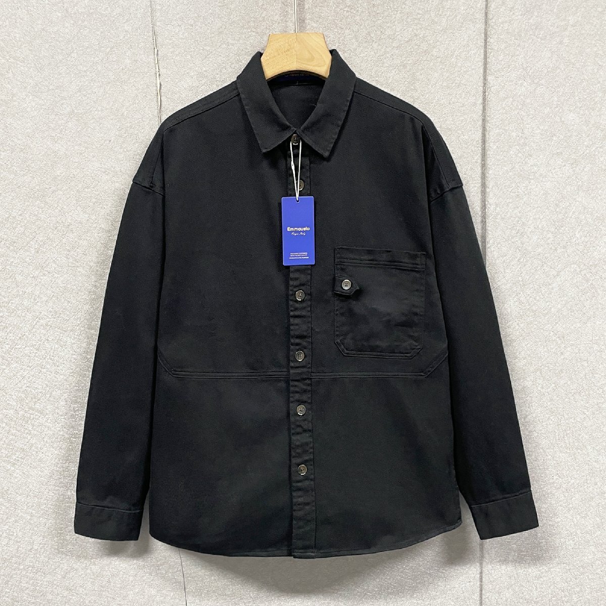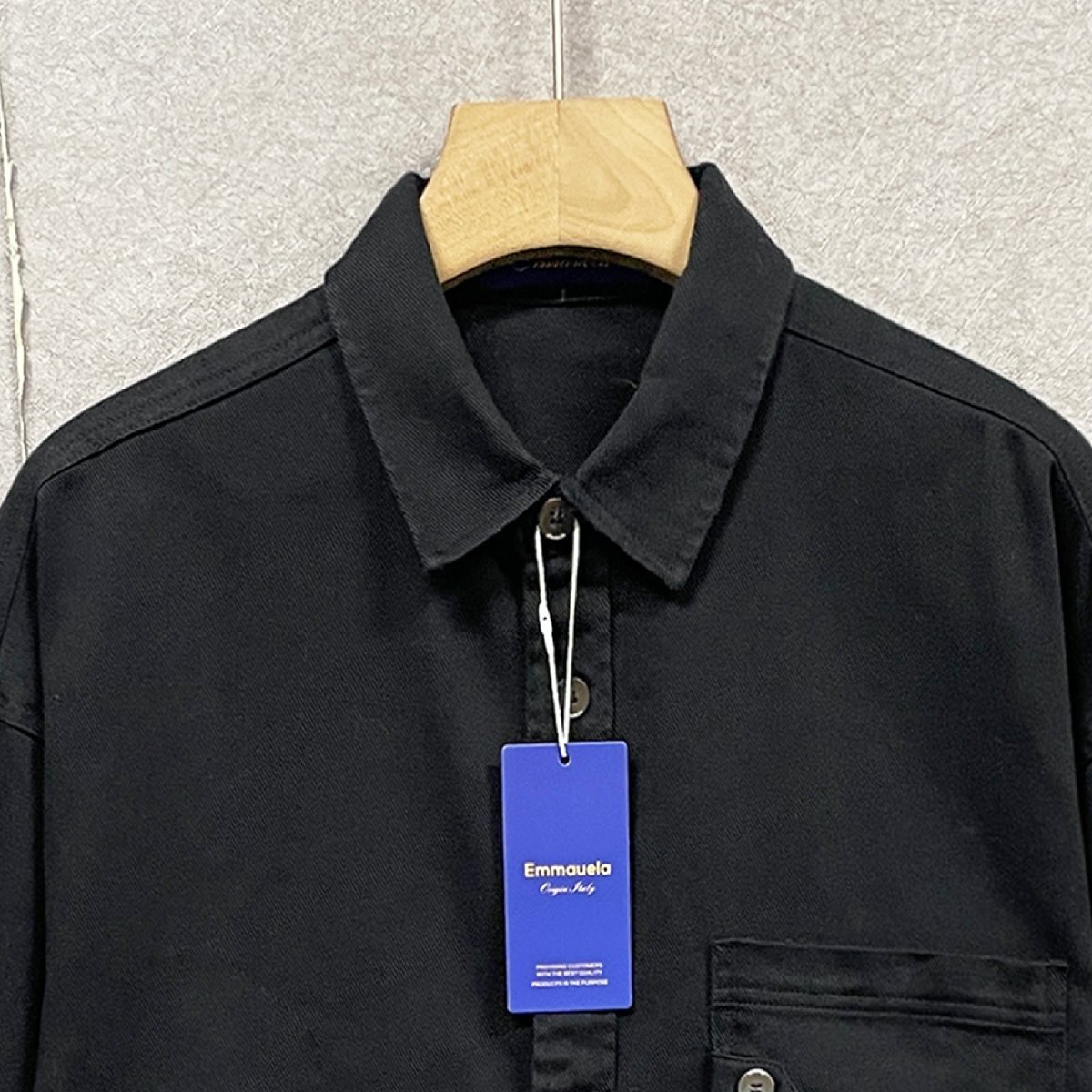 上級・デニムジャケット 定価4万◆Emmauela・イタリア・ミラノ発◆綿混 快適 無地 折り襟 スウェット ジャケット シャツ 日常着 L/48サイズ