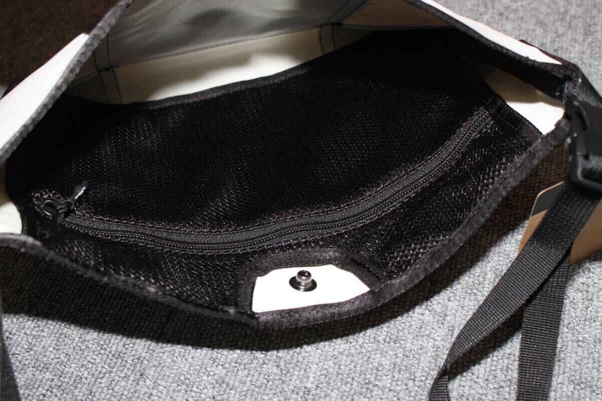 大事な物を安全に収納できる吊り下げ式のメッシュポケット