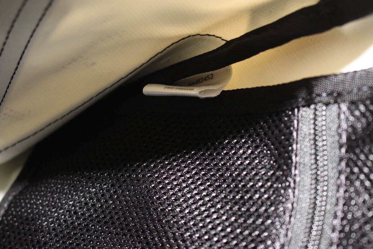 メイン素材は、環境に配慮した1000デニールのリサイクルポリエステルを一部使用し、TPEファブリックラミネートを施した高強度の生地を採用。