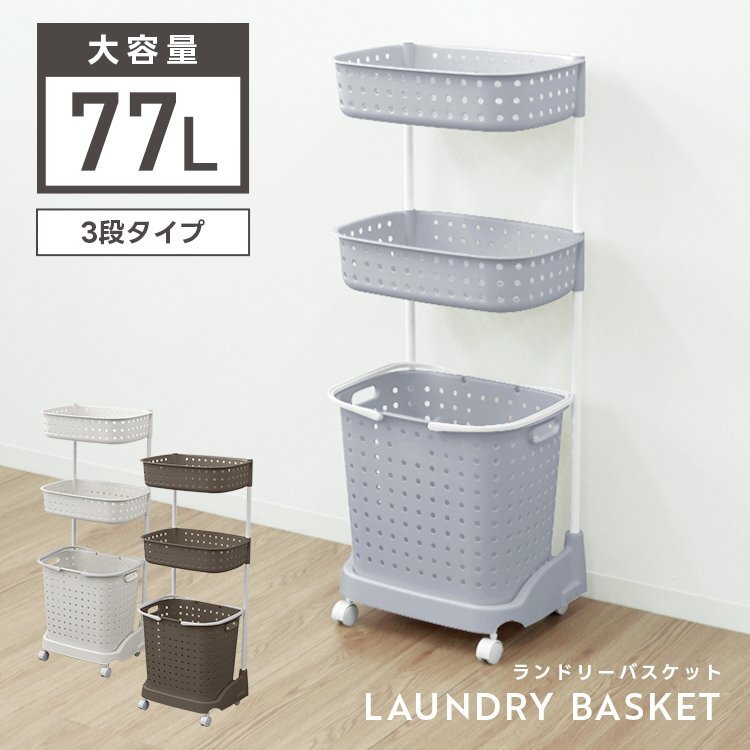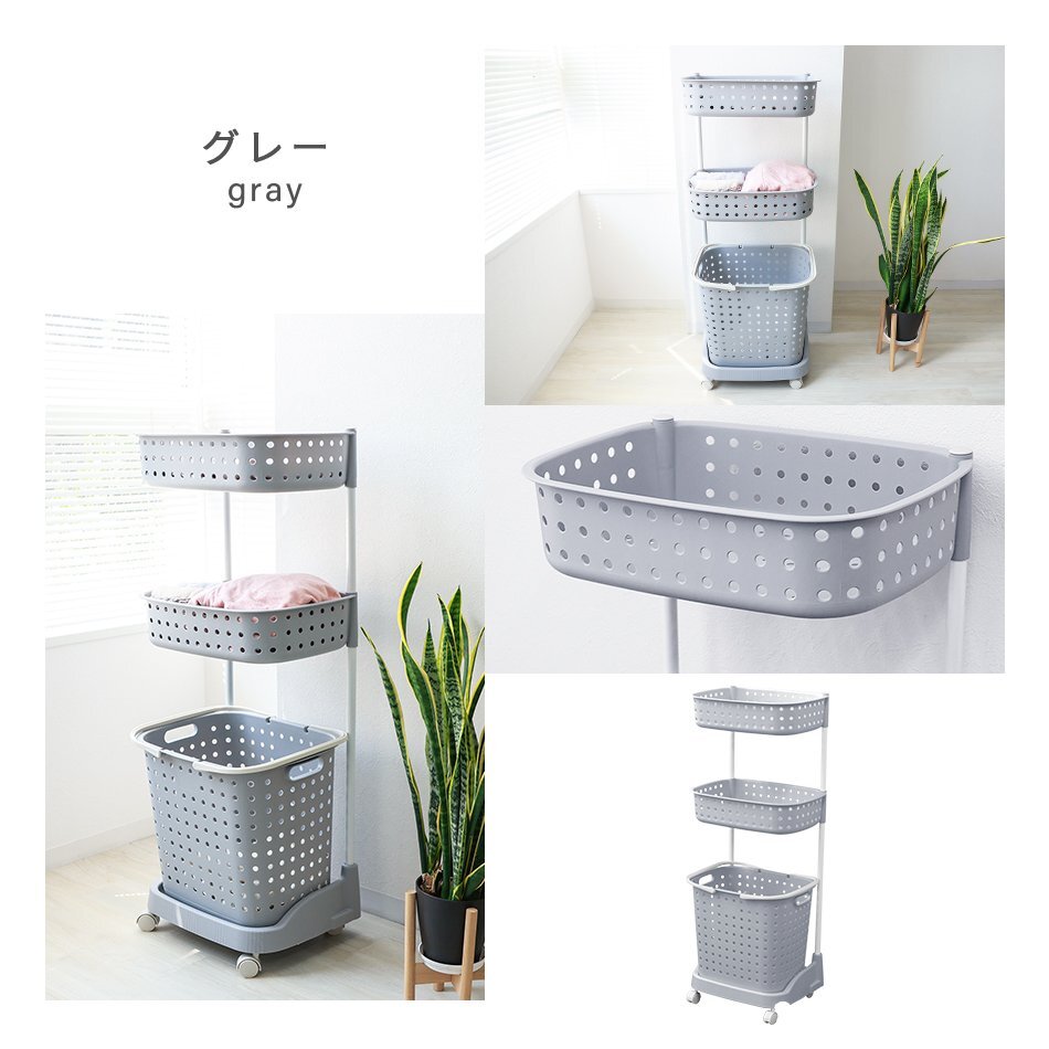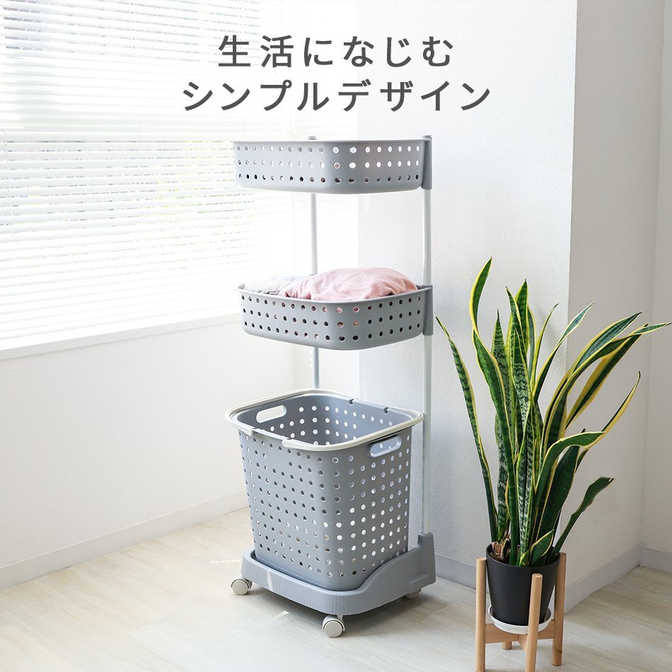 サニタリースペースをすっきり出来ます。 上段の浅バスケットにはバス用品、洗濯機まわりの小物が収納できます。 入浴時の着替えや脱衣カゴとしても重宝します。 下段のバスケットは大容量の深型タイプ!洗濯物干し場までの移動に便利なハンドル付き。 移動に便利なキャスター付きです。 【商品仕様】 カラー:グレー サイズ(約):幅420×奥行320×高さ1020mm(キャスター取り付け時) 重量(約):2.5kg 容量(約):77L 材質:ポリプロピレン、スチール 組立式 |