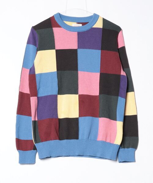 参考商品名:BEAMS/ブロックチェッククルーネックニット
