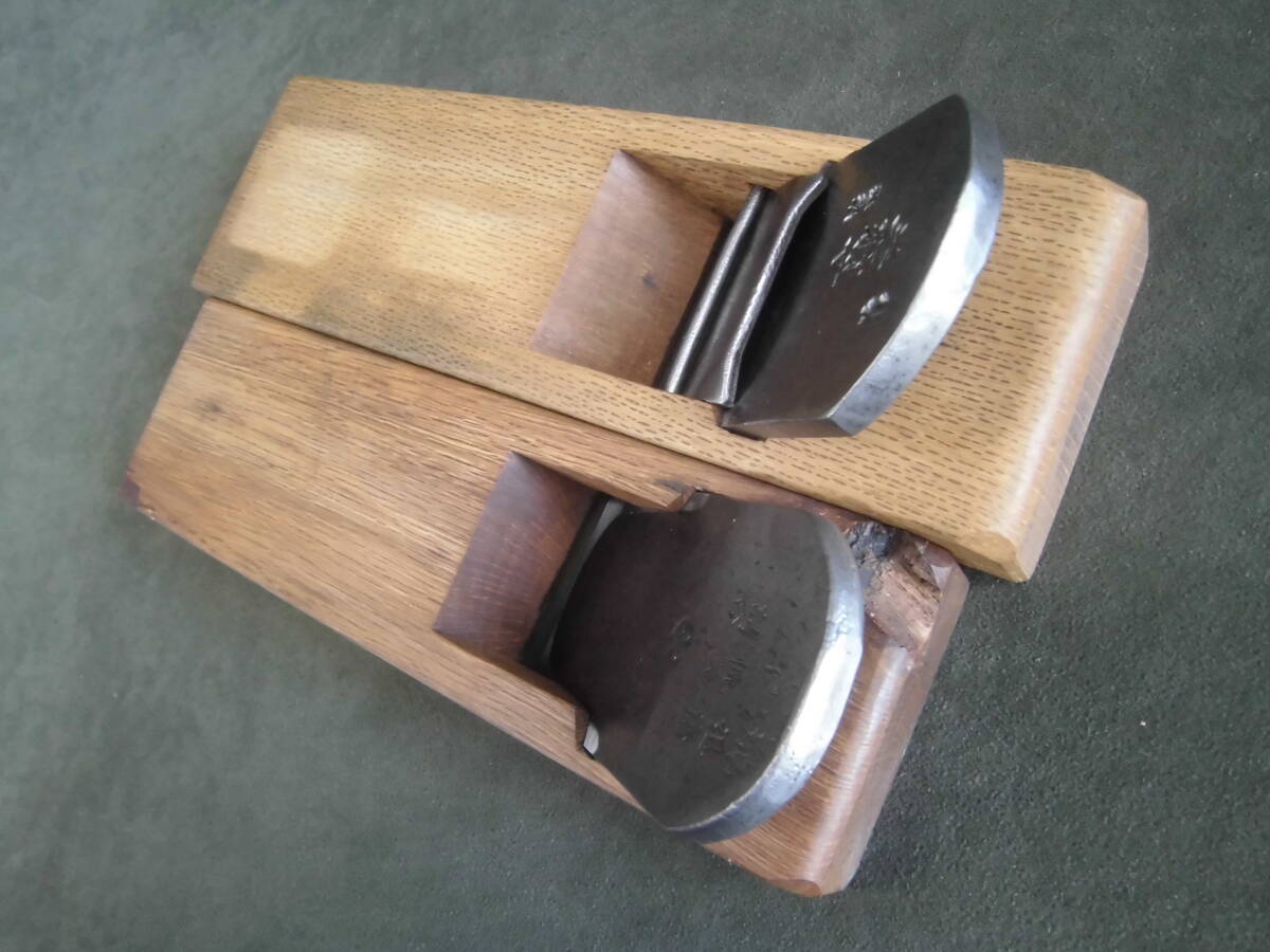 昭和鉋・東京鉋・三木鉋・(銘・悦英一枝鉋・若獅子)職人専用平鉋・中古二台・A1