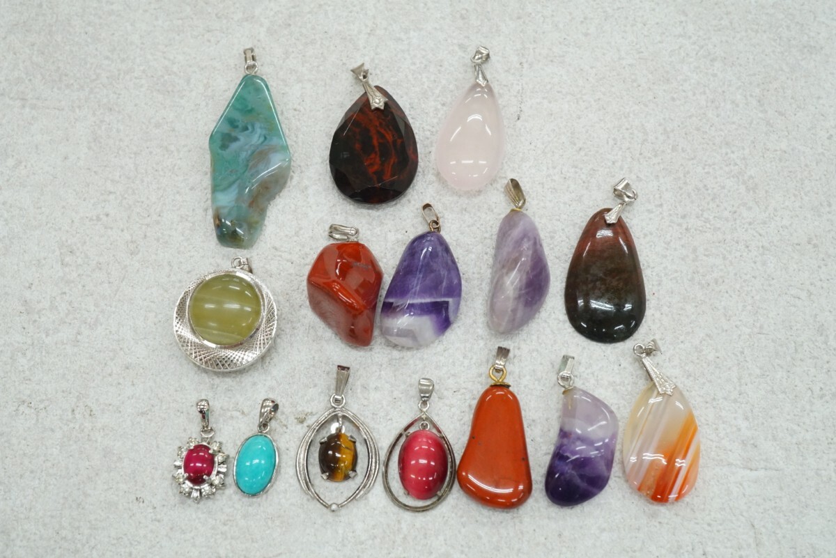 C84 全て天然石 カラーストーン ネックレス ペンダント 15点セット ヴィンテージ アクセサリー 大量 まとめて おまとめ まとめ売り