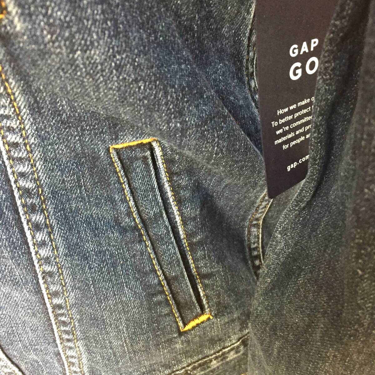 カジュアルコーデに欠かせない定番アイテム、GAPのデニムジャケットです。