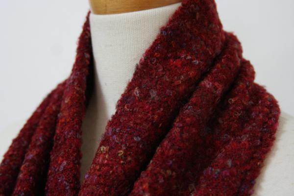 ・生地の厚さはマフラーの標準的な厚さで、二重合わせで手編みのような肌触りが魅力的です。