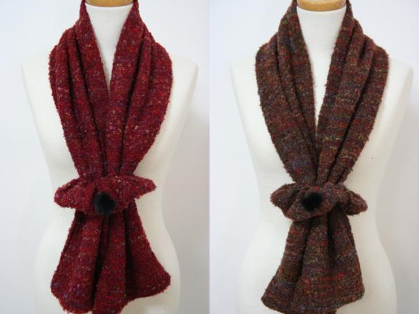 送料無料◆2色組◆シュシュ付きマフラー(レッド&ブラウン)