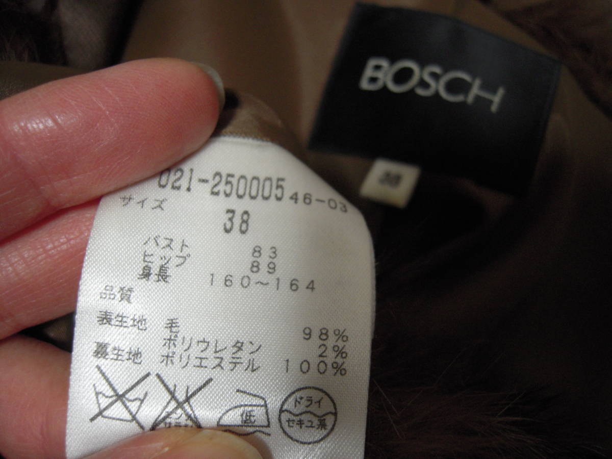 ボッシュのスタイリッシュなファーカラースーツです☆ウール素材ですので、秋から冬にかけてピッタリのシックなお色とデザインです。ラビットファーは取り外しが可能ですので、シンプルなスタンドカラーとしてもお召しになれます。共紐でウエストマークをしてメリハリをつけたり、又そのままジャケットとして羽織っていただいても使える優秀ものです♪お色は上品なブラウン系。サイズ各38 ジャケット 肩幅約38cm 着丈約58cm 袖丈(伸ばした状態)約60.5cm(折り返し可能)スカート 着丈約58cm W約34cm。普通に使用感、着用しわなどはありますが、目立つ汚れやシミ、ダメージは見当たりません。ただあくまでUSEDですので、感じ方は個人差があります。神経質な方は入札をご遠慮下さい。なるべくご質問にはお応えしますので、落札後はノークレームノーリターンでお願いします。定形外発送については補償がない事をご了解いただいた上で、お申し出ください。ご心配な方は追跡可能な発送方法をお選びくださいますよう、お願い致します。また最近いたずら入札が多発しているようなので、ご新規、ご評価がひとけた・マイナス評価が多い方の入札は遠慮させて頂いておりますので事前連絡なく取り消す場合がございます。ご了承下さい。