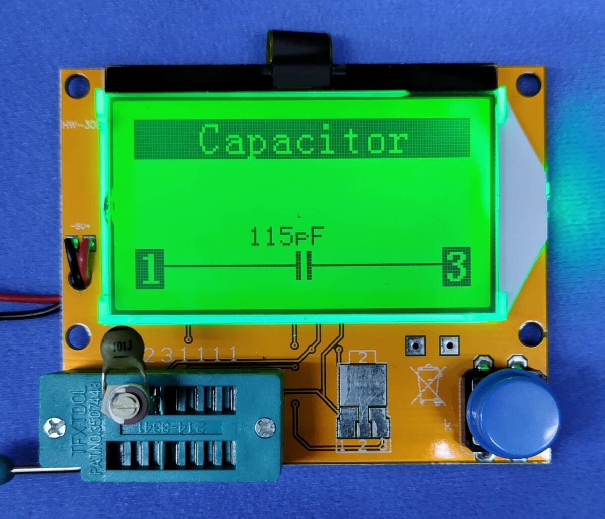本製品に 100PFのコンデンサを並列に接続を(4枚目の写真)して測定(100PF+トリマコン)=合計110PF)と表記しました。