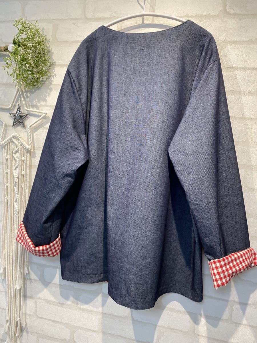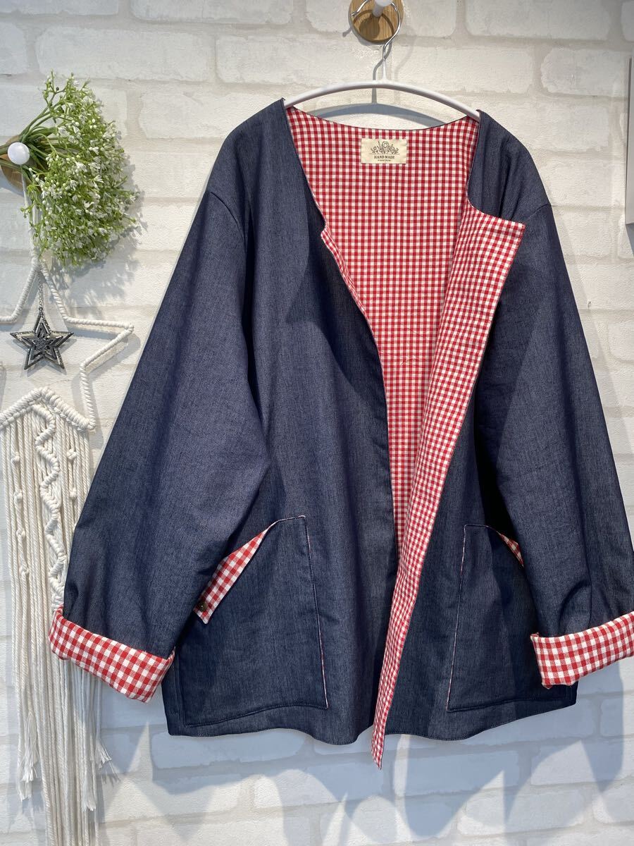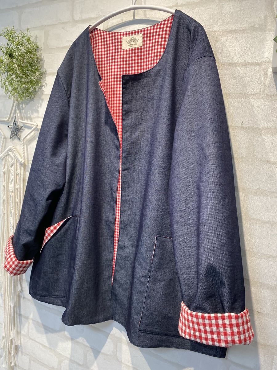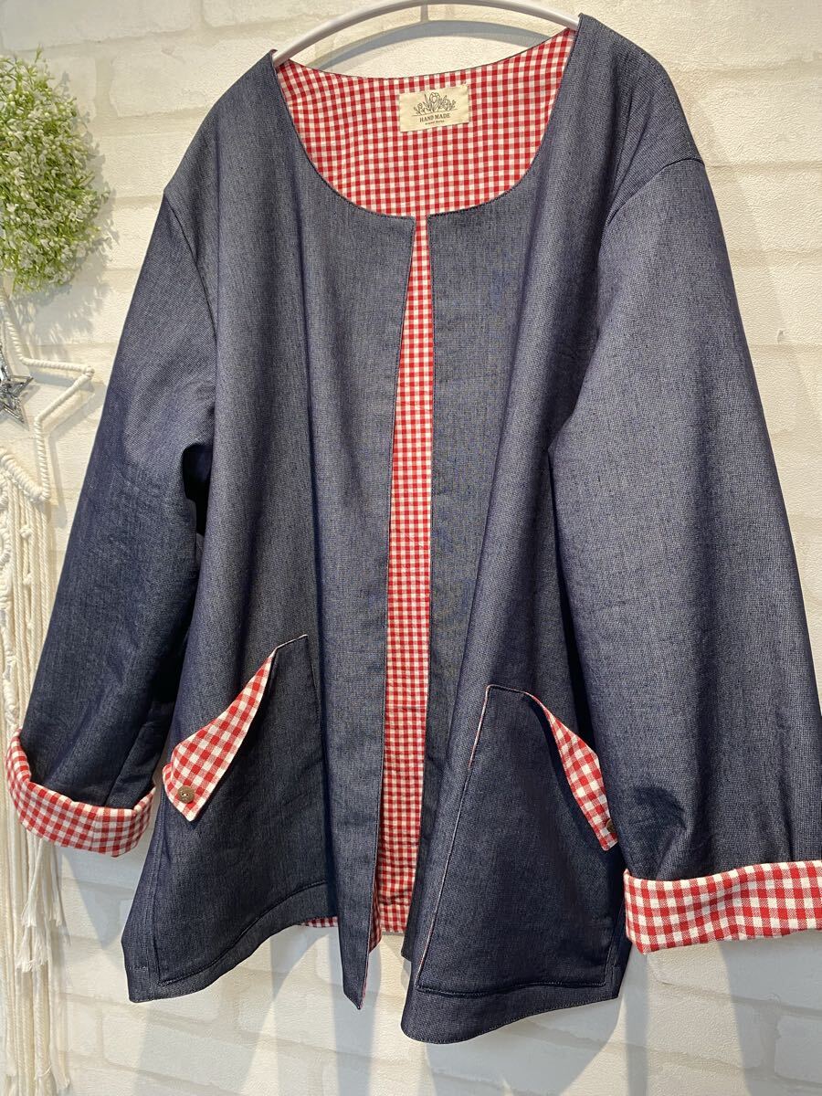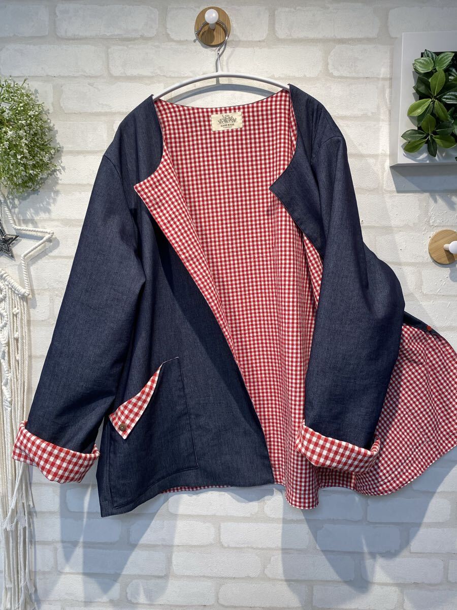 ハンドメイド♪ダンガリーストレッチ&先染めギンガム♪総裏付き♪サッと羽織るジャケット