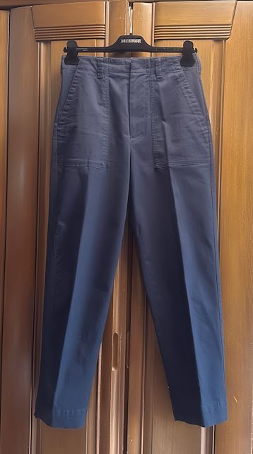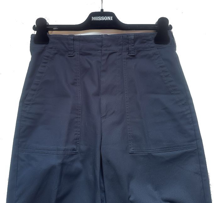 ◎オンワードのジェンダーレスブランド・イーコールの、洗練されたチノ・パンツです。しっかりとした型崩れのし難い素材感ですが、厚すぎず、ストレッチ入りで履き心地もいいですよ。サイズはSですが大きめで、通常Mサイズの私がちょうどよい感じでした。実寸サイズもご参照ください。大変質の良いパンツで気に入っていたのですが、ネイビーとブラックのパンツは定番でたくさん買うため増えてしまい、少し整理中です。いかがでしょう★